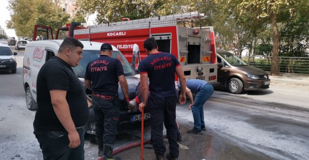 E.K. idaresindeki 34 PN 2542 plakalı hafif ticari araç, Tatlıkuyu Mahallesi Ahmet Pembegüllü Bulvarı'nda seyir halindeyken motor kısmından alev aldı.