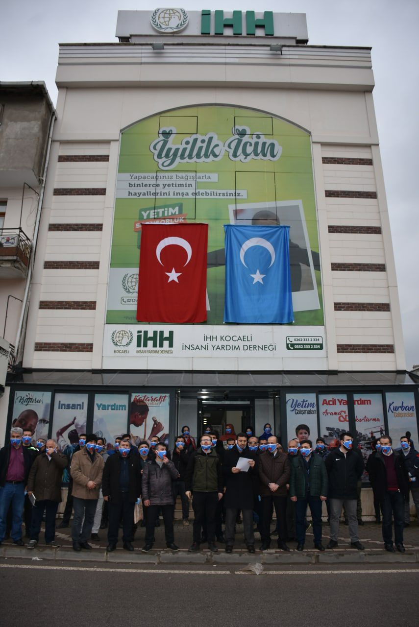 Doğu Türkistan'da yaşanan zulüm ve insan hakları ihlalleri için Kocaeli'de bir çok Sivil Toplum Kuruluşunun da katılımıyla İHH Kocaeli Dernek binası önünde Basın açıklaması gerçekleştirdi.
