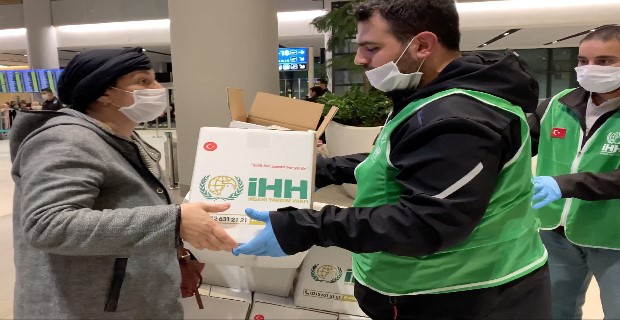 İnsan Hak ve Hürriyetleri (İHH) İnsani Yardım Vakfı, yeni tip koronavirüs (Kovid-19) nedeniyle uçuşları iptal edilen ve İstanbul Havalimanı'nda mahsur kalan çoğu Cezayirli, Özbekistanlı, Afganistanlı ve Türkmenistanlı vatandaşlara insani yardım malzemesi ulaştırdı.
