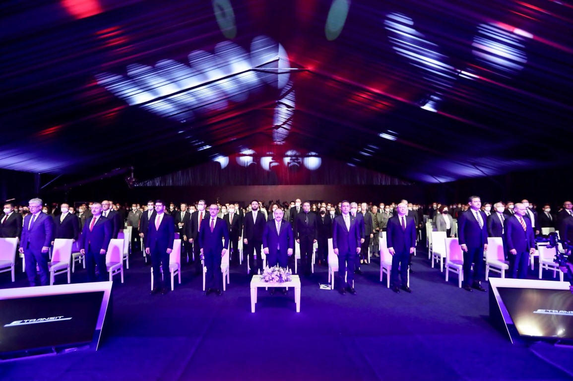 E-Transitlerin hattan indirilmesi benim düğmeye basmamla başlayacak. Bu vesileyle ben ticari araç piyasasında çok konuşulacak ve sektörde Türkiye’yi bir adım öne çıkaracak Elektrikli transit’lerin hayırlı uğurlu olmasını diliyorum. Burada üreteceğimiz arabaların dünyada ne kadar beğenildiğini gayet iyi biliyorum. Ford Otosan bu manada sadece Kocaeli’nin değil Türkiye’nin de gözbebeği üretim tesislerinden bir tanesidir. Ama hedefleri büyük. Hedefleri çok daha büyük kapasiteleri oluşturabilmek. Ford Otosan kapasitesini artırsın ki ihracatımız da artsın. Dünya otomotiv sektöründe Ford Otosan ile daha büyük yer tutalım. Bu manada genel paydaşların Ford Otosan’a anlayış göstermesi, destek olması lazım. Biz burada yatırımlarımızı artırabilirsek emin olun Türkiye kazanacak. İnşallah biz Ford Otosan’ın 650 bin araç değil, 1 milyon 650 bin araç ürettiğini görmek istiyoruz. Bunu yapabilecek kapasite ülkemizde mevcut. Bunu yapabilecek teknik personel ülkemizde mevcut. Bunu yapabilecek emekçi kardeşlerimiz ülkemizde mevcut. Bunu hep beraber başarabiliriz. Sizleri Allah’a emanet ediyorum.” diyen Sayın Bakan üretime istihdama katkı sunan herkese teşekkür etti.