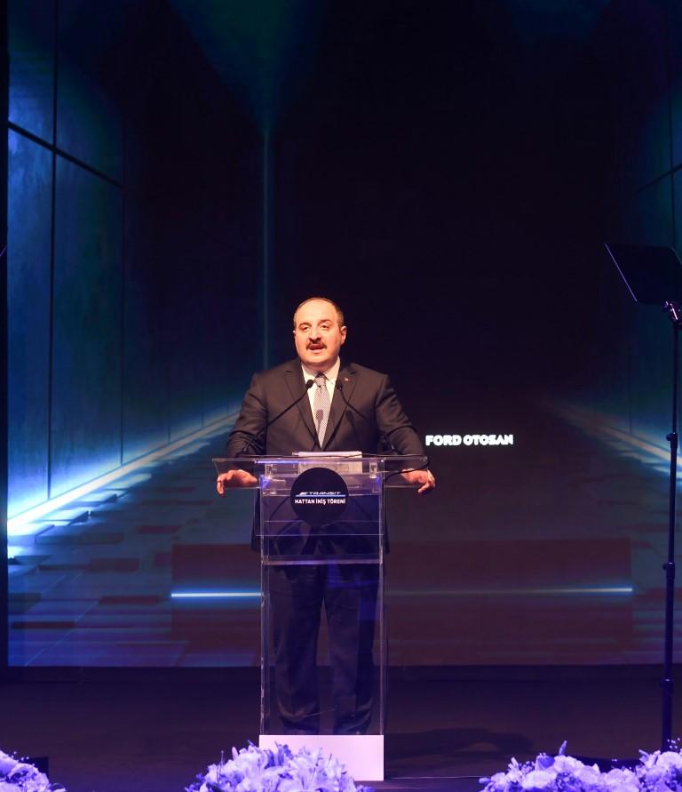 Koç Holding Yönetim Kurulu Başkan Vekili ve Ford Otosan Yönetim Kurulu Başkanı Ali Y. Koç ve Türk Metal Sendikası Genel Başkanı Pervul Kavlak’ın konuşmalarının ardından Türk sanayinin yüz akı şehirlerinden bir tanesi olan Kocaeli’de olmaktan duyduğu memnuniyeti belirterek konuşmalarına başlayan Sanayi ve Teknoloji Bakanımız Sayın Mustafa Varank; “Açılışlar, temel atmalar ve ziyaretler vesilesiyle biz de her fırsatta Kocaeli’de sizlerle bir aradayız. İşte bugün de Ford Otosan Kocaeli Fabrikasında Türk Otomotiv sanayii için önemli bir güne şahitlik ediyoruz.10 yıla yayılan büyük bir vizyonun ilk adımlarından biri, Ford Otosan tarafından Avrupa pazarına ihraç edilecek E-transit’in ilk aracı üretim bandından iniyor. Ford Otosan geçtiğimiz yıl, Sayın Cumhurbaşkanımızın katıldığı bir toplantıyla 2 milyar avroluk yatırım planını kamuoyuna açıklamıştı. İşte bu yatırım o gün açıklanan vizyonun ilk aşaması. % 100 elektrikli ticari araç yatırımı ile Ford Otosan’ın üretim kapasitesi 455 binden 650 bine çıkıyor. Böylelikle Ford Otosan Avrupa’nın ticari araç üretim üssü unvanını taçlandırmış olacak. İhraç edilecek bu araçlar ihracat şampiyonu unvanını da perçinleyecek. Yan sanayide ortaya çıkacak 15 bin kişilik ilave istihdamla birlikte 18 bin vatandaşımıza yeni iş imkânı oluşacak. Şahsen yatırım, üretim, istihdam ve ihracatın fazlasıyla olduğu bu değerli projenin her türlü takdiri hak ettiğini düşünüyorum. Bugün bir araya gelmemize vesile olan Elektrikli Transit’in hayırlı olmasını diliyorum. Bu değerli adımların atılmasında pay sahibi olan yöneticileri ve emekçi kardeşlerimi tebrik ediyorum.