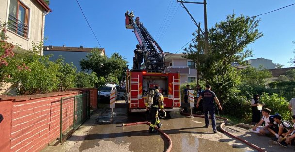 Kartepe ilçesinde iki katlı binanın çatısında çıkan yangın itfaiye ekipleri tarafından söndürülürken, sokağa dökülen vatandaşlar meraklı gözlerle olup biteni izledi.