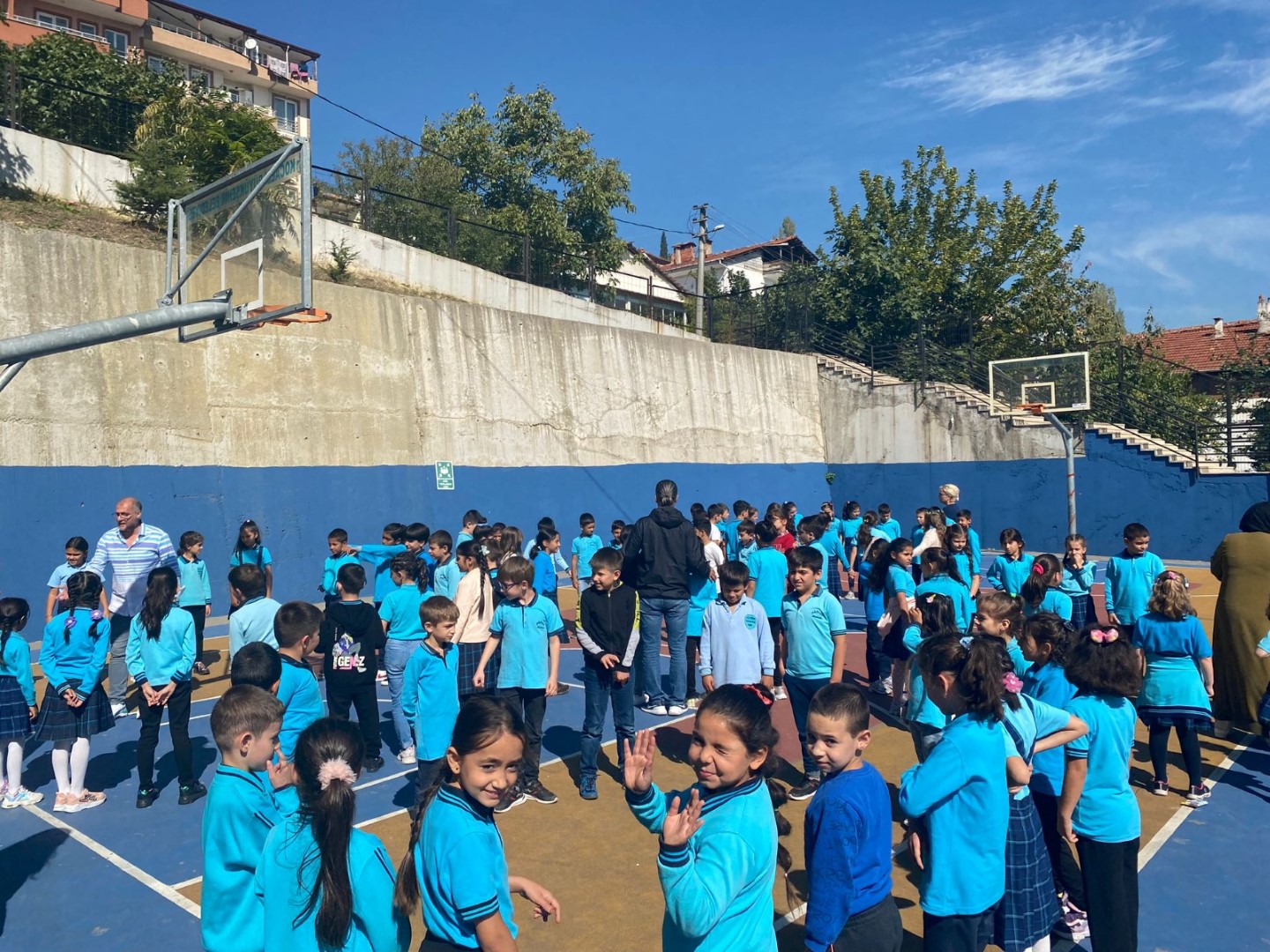OKUL BAHÇESİNDE TOPLANDILAR