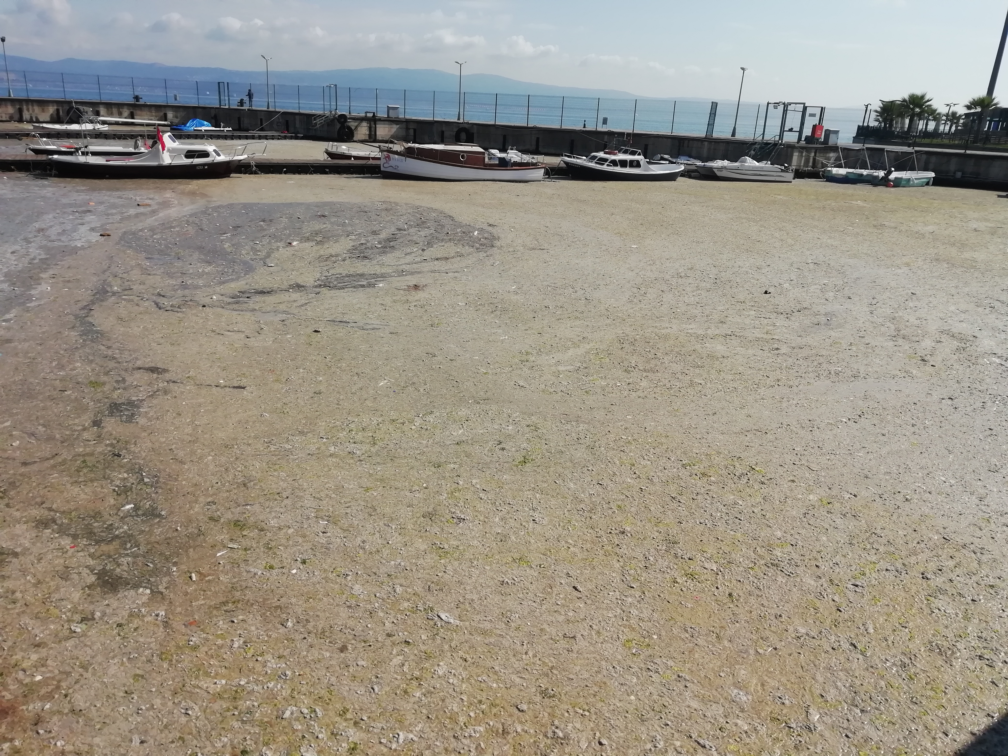 Belediye ekipleri, bölgede biriken müsilaj tabakalarını temizlemek için çalışmalarına devam ediyor.
