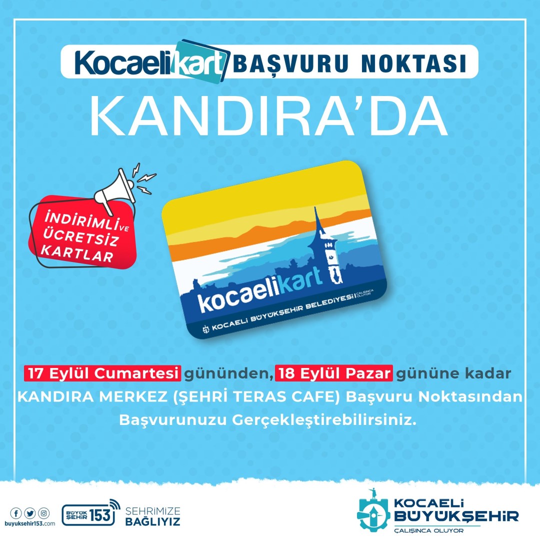 Hafta sonunda hizmet verecek geçici alan Kandıra Merkez Şehri Teras Kafeye kurulacak. Vatandaşlar bu süre içinde indirimli ve ücretsiz seyahat kartları basım ve vize işlemlerini İzmit’e gelmeden yapabilecek.