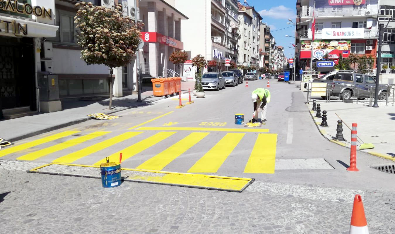 Sosyal İşler Müdürlüğü ekipleri de engelli park yerleri ve kaldırımları boyayarak bakımını gerçekleştiriyor.