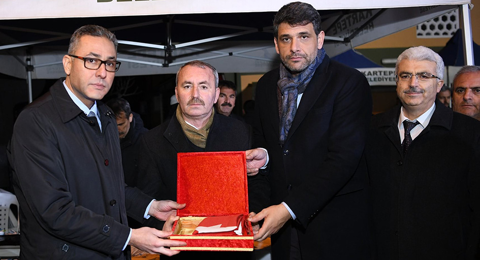Atalar Camii’nde akşam ile yatsı namazı arasında Kartepe Kaymakamı Altuğ Çağlar, Kartepe Belediye Başkanı Av.M.Mustafa Kocaman, ilçe protokolü ve yüzlerce Kartepeli hemşehrisi Şehit Jandarma Astsubay Fatih Karagöz’ün babası Selahattin, annesi Havva Karagöz’e yeniden başsağlığı dileğinde bulundular. Mevlid-i Şerif sonunda Kaymakam Çağlar ve Belediye Başkanı Kocaman şehit Jandarma Astsubay Fatih Karagöz’ün babası Selahattin Karagöz’e Türk Bayrağı hediye ettiler.