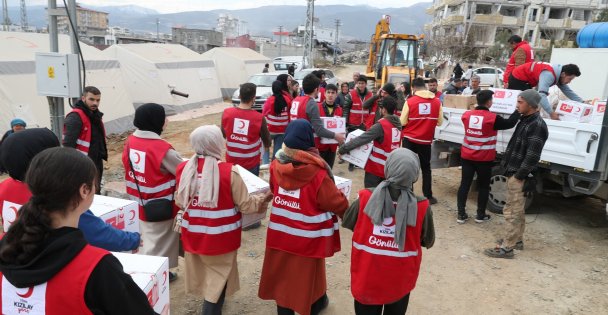 Kahramanmaraş merkezli 11 ili etkileyen depremin ardından Türk Kızılay tüm afet bölgesinde günde üç öğün olarak verdiği beslenme desteğinin yanı sıra özellikle çadır kentlerde ve kırsal kesimlerde kalan afetzedelere diğer insani yardım malzemelerini de ulaştırıyor. Kızılay, battaniye, kışlık kıyafet, ısıtıcı, mama, çocuk bezi, gıda kolisi ve hijyen kolisi gibi malzemeleri dağıtımına devam ediyor.