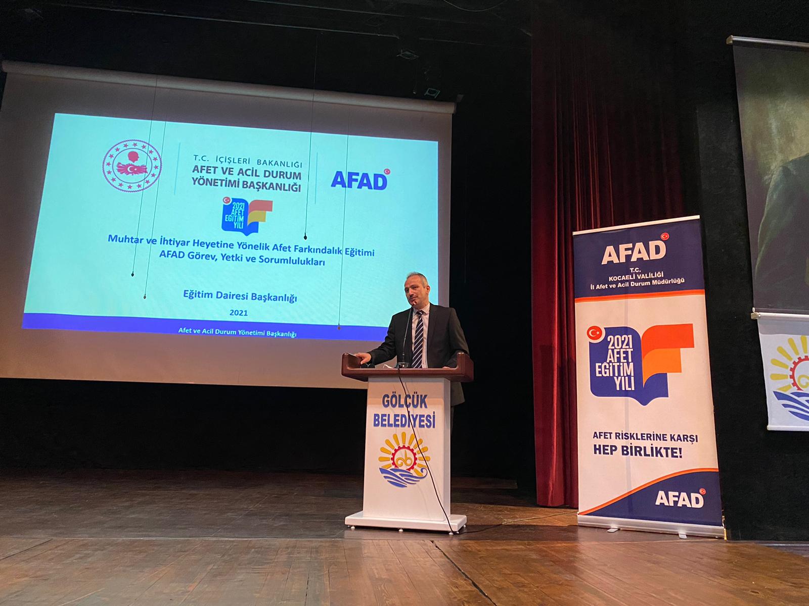 İl AFAD Müdürü Mehmet Emin Koçan 2021 Afet Eğitim yılı kapsamında İlimizin tüm ilçelerinde yoğun bir afet farkındalık süreci yaşandığını belirtti. Bu kapsamda, İlimiz tüm ilçe kaymakamlıkları muhtar ve ihtiyar heyetine; İzmit Kaymakamlığı 159, Gebze Kaymakamlığı 49, Kandıra Kaymakamlığı 83, Karamürsel Kaymakamlığı 83, Kartepe Kaymakamlığı 52, Körfez Kaymakamlığı 189, Dilovası Kaymakamlığı 58, Gölcük Kaymakamlığı 101, Darıca Kaymakamlığı 74, Başiskele Kaymakamlığı 133 ve Derince Kaymakamlığı’ndan 50 kişiye AFAD eğitmenleri; Adem Süer, Sebahattin Yaşa, Hüseyin Çakırca, Alper Şen, Belma Kardaş ve İsmail Aktaş tarafından afet farkındalık, İRAP, TAMP, sivil savunma, yangın ve yileştirme süreçleri hakkında eğitim verildi.