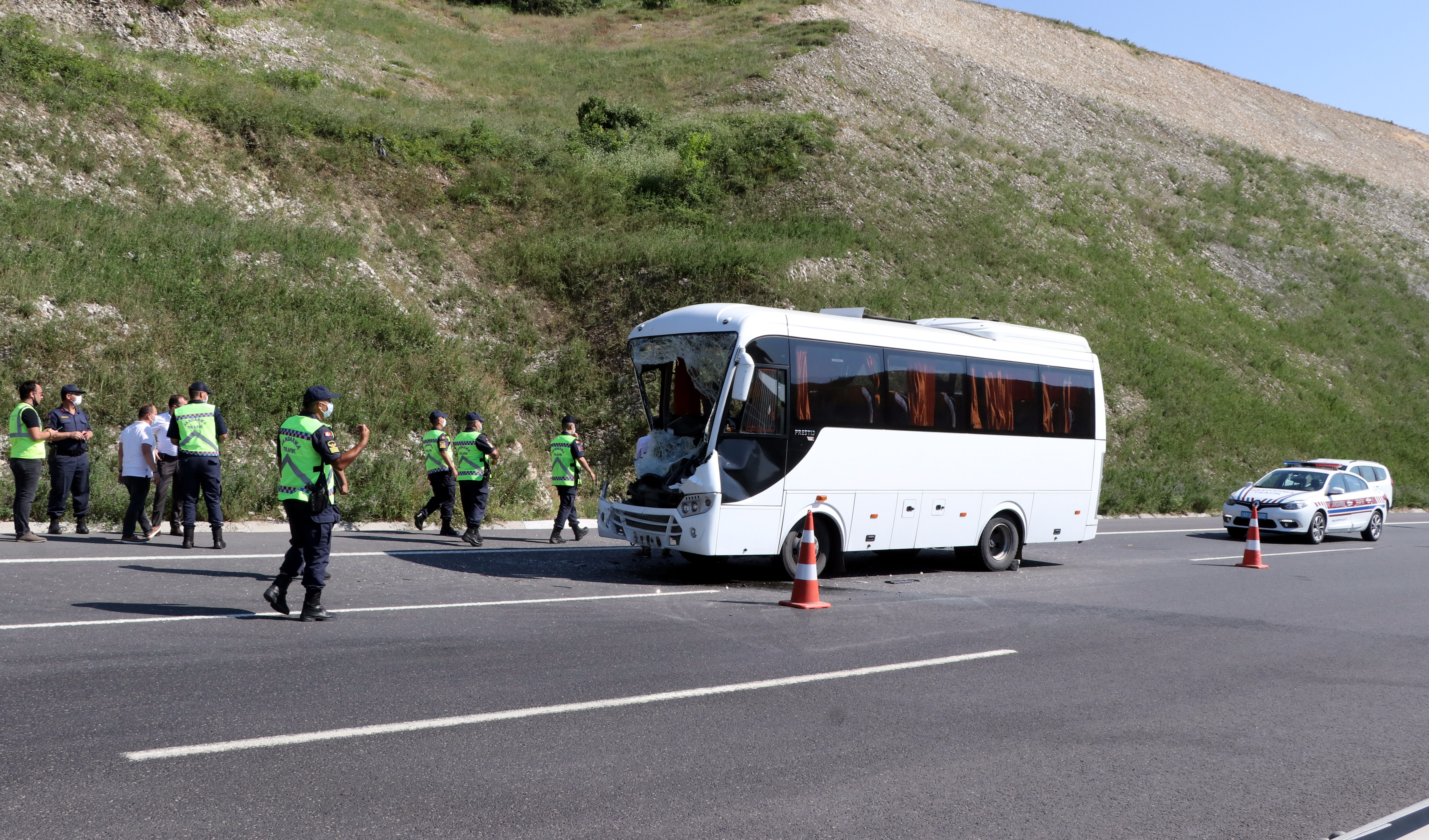 Alınan bilgiye göre, Kuzey Marmara Otoyolu Dilovası mevkisinde işçi servisi olduğu belirtilen 34 KM 4887 plakalı minibüsle 34 YKL 40 plakalı kamyon çarpıştı.
