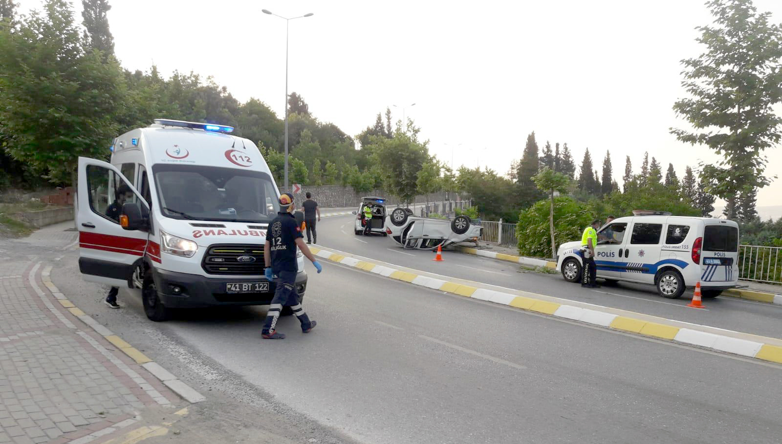 Çevredekilerin haber vermesiyle olay yerine gelen sağlık ekipleri, yaralanan sürücüyü ters dönen araçtan çıkarak, Karamürsel Devlet Hastanesine kaldırdı.