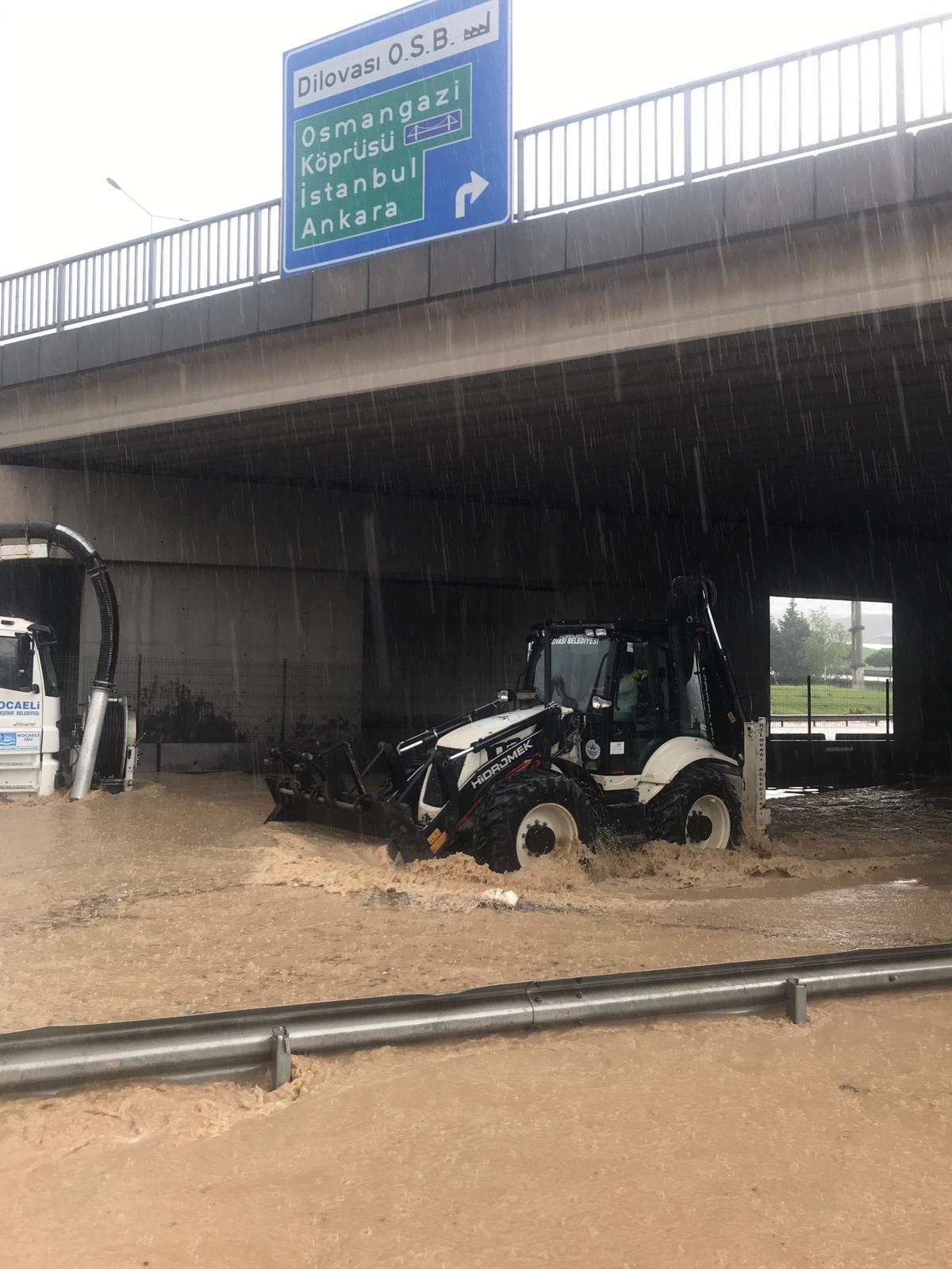 Kara yolunun Dilovası kesiminde sağanak nedeniyle İstanbul istikametinde kapanan ulaşım, yapılan çalışmaların ardından kontrollü şekilde sağlanmaya başladı. Ankara yönünde ise trafik tüm şeritlerden sağlanıyor.