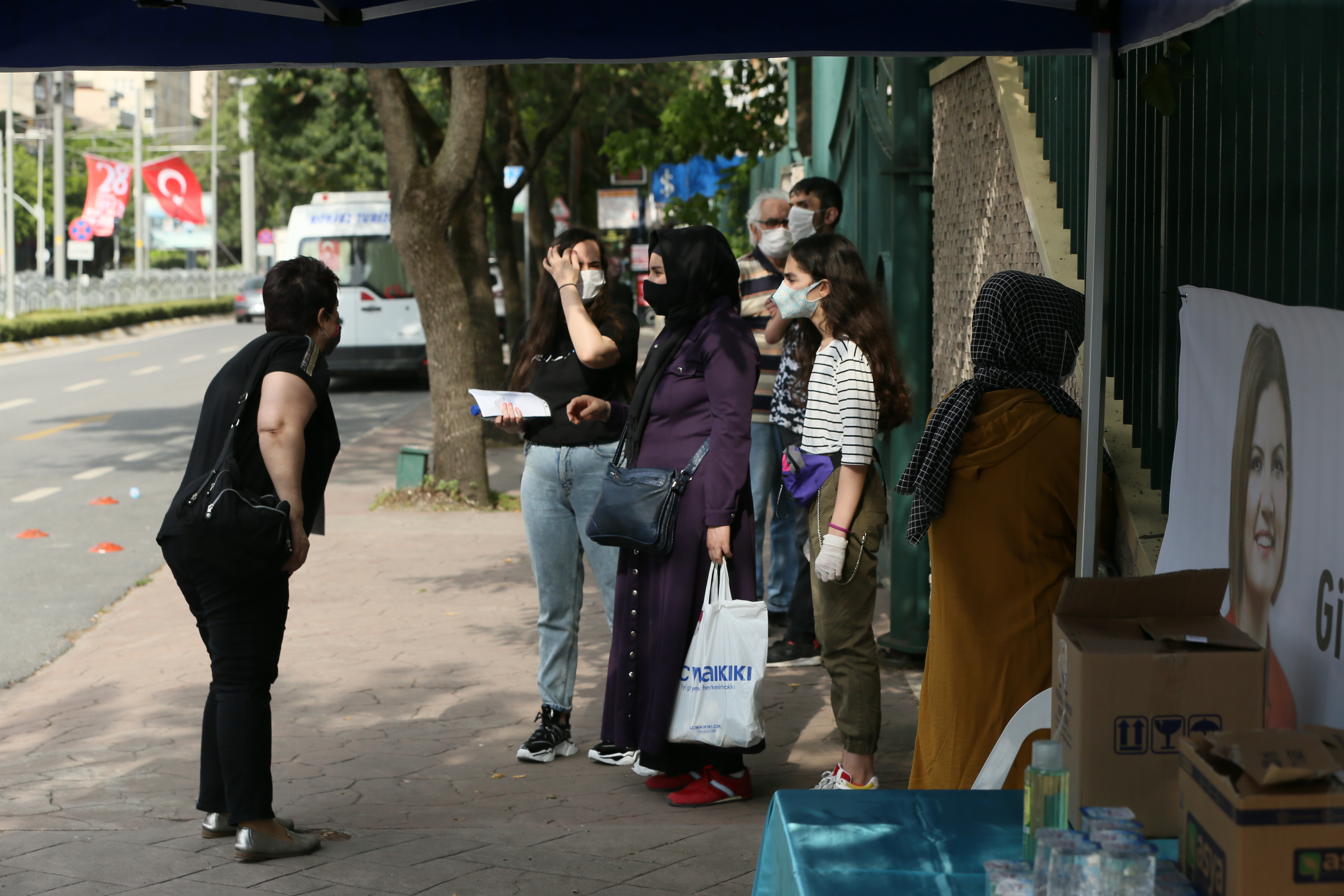 İlçe belediyeleri ise sınav merkezleri önüne kurduğu stantlarda adaylara su, kolonya ve maske dağıttı.