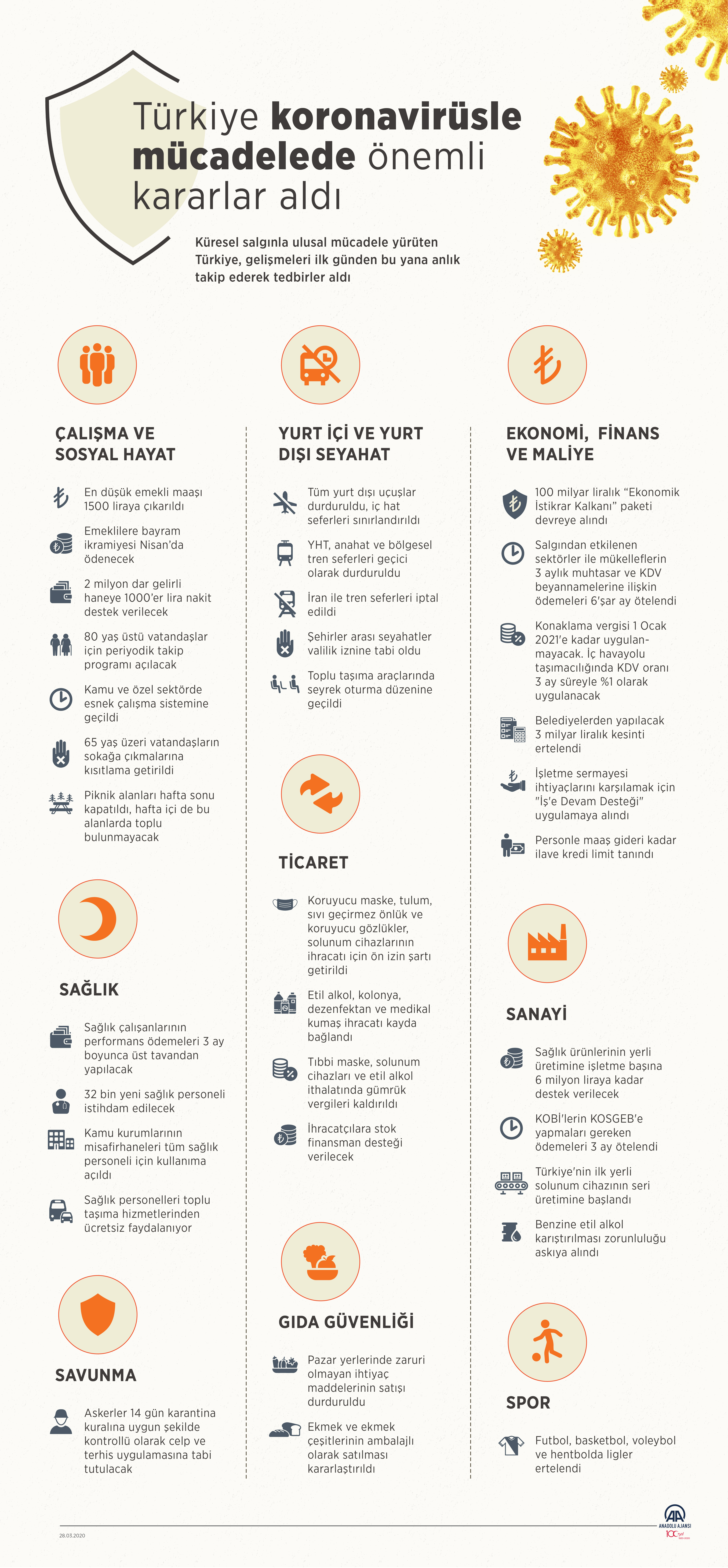 Küresel salgınla ulusal mücadele yürüten Türkiye, gelişmeleri ilk günden bu yana anlık takip ederek tedbirler aldı.