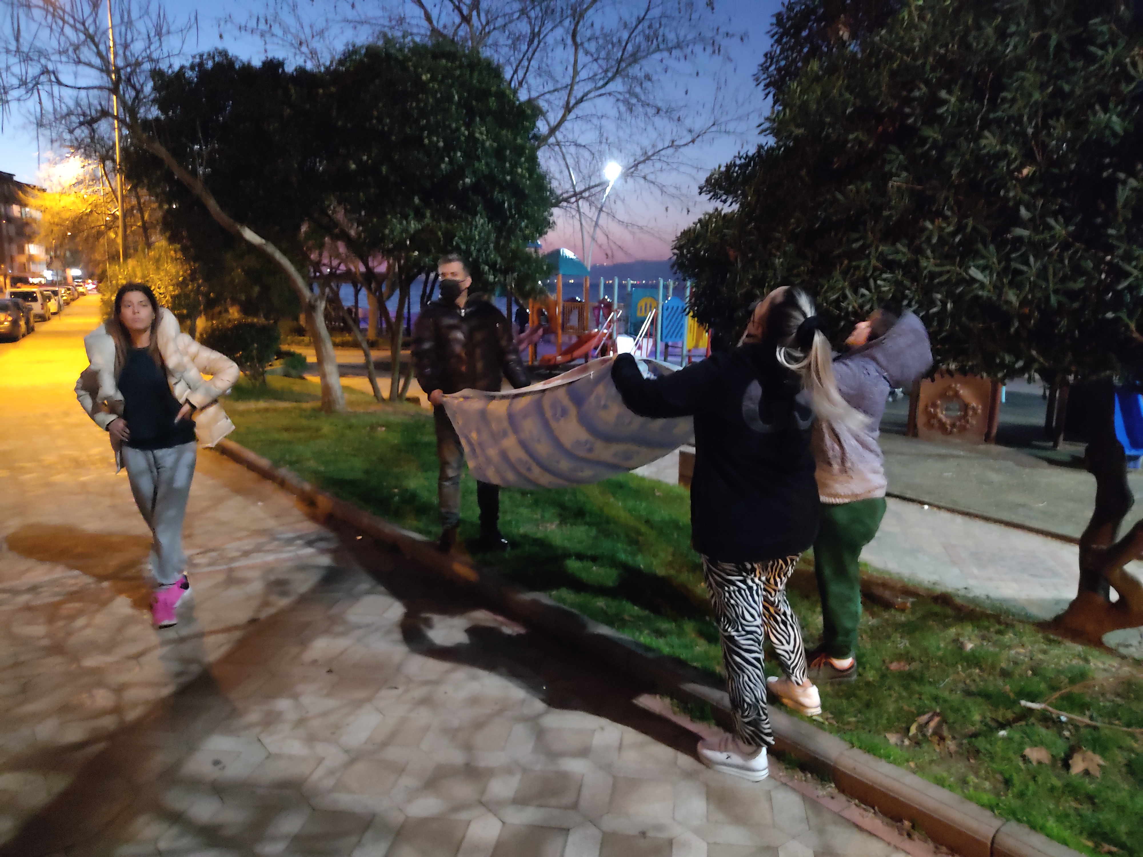 Vatandaşlar ise kedinin ağaçtan düşme ihtimaline karşı battaniyelerle tedbir aldı.