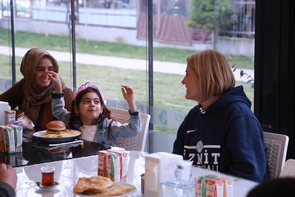 Depremin yaralarını sarmak amacıyla çalışmalarını sürdüren İzmit Belediye Başkanı Fatma Kaplan Hürriyet, deprem bölgesinden İzmit'e gelen vatandaşlarla İzmit Belediyesi Sosyal Tesisi Gülümse Kafe’de bir araya geldi. Başkan Hürriyet ayrıca, minik Ecrin’e doğum günü sürprizi yaptı. 7'nci yaşına İzmit'te giren ve doğum günü sürprizi yapılan Ecrin, pastasını Başkan Hürriyet ile beraber kesti. Sürprizden dolayı çok mutlu olan Ecrin ve ailesi, İzmit Belediye Başkanı Fatma Kaplan Hürriyet’e teşekkür etti.