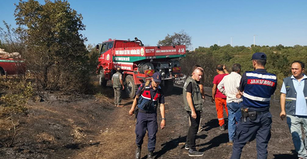 Alan içerisinde bulunan trafoda patlamaların meydana geldiği yangında, 1 dönümlük makilik alan ile tarım arazisi zarar gördü.