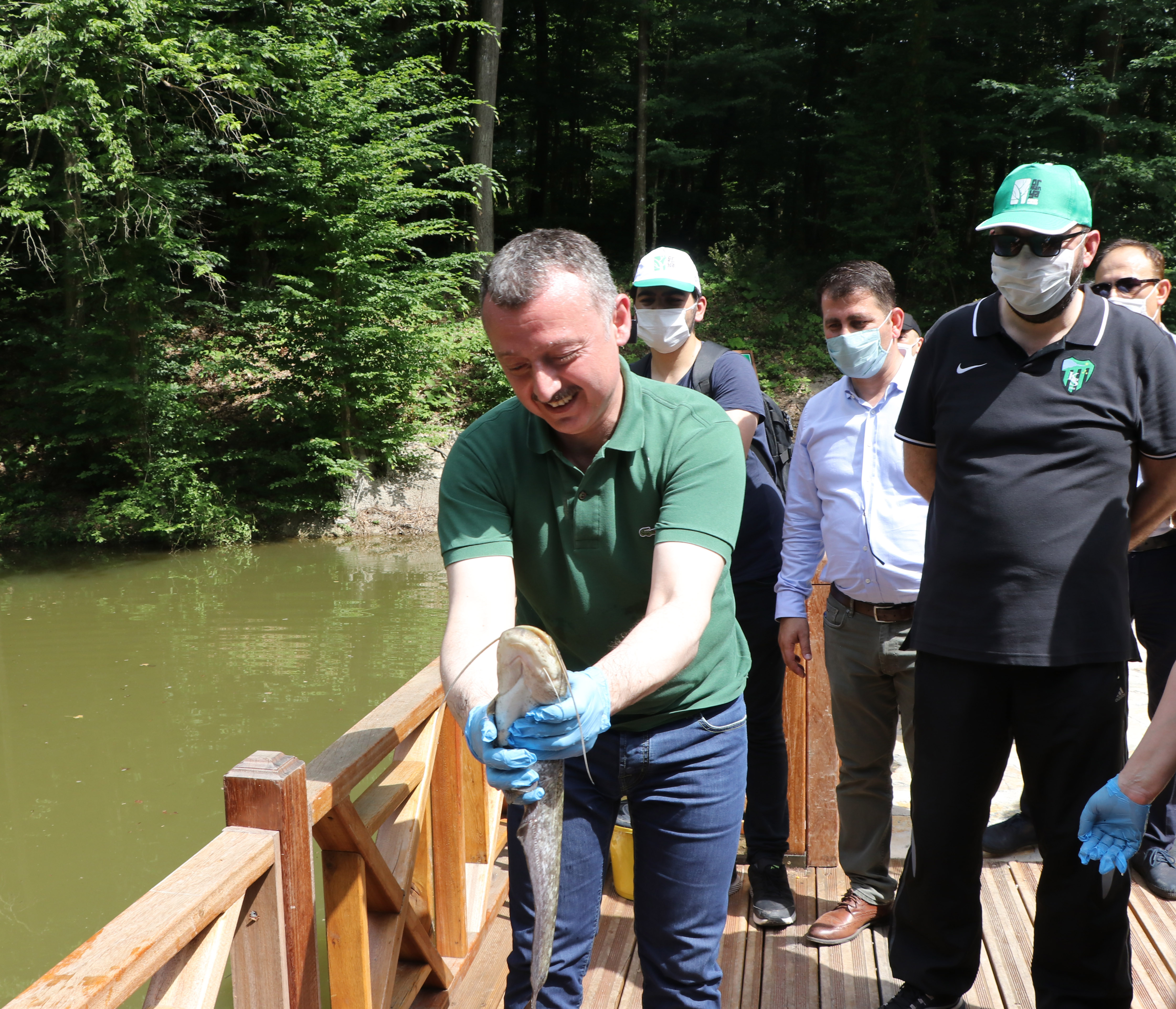 Konuşmaların ardından gölette balık tutan Büyükakın, Zeybek ve beraberindekiler, daha sonra bunları geri saldı.