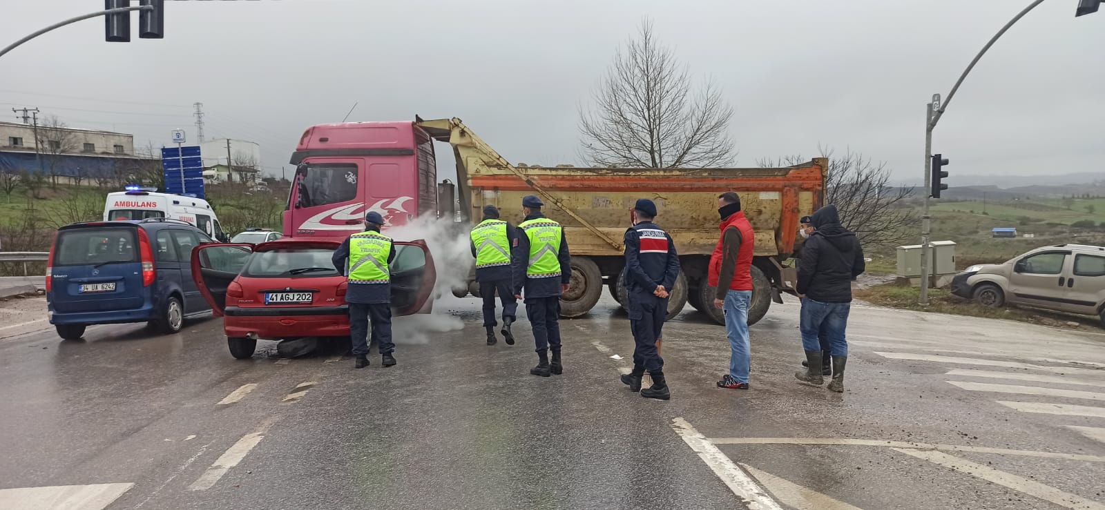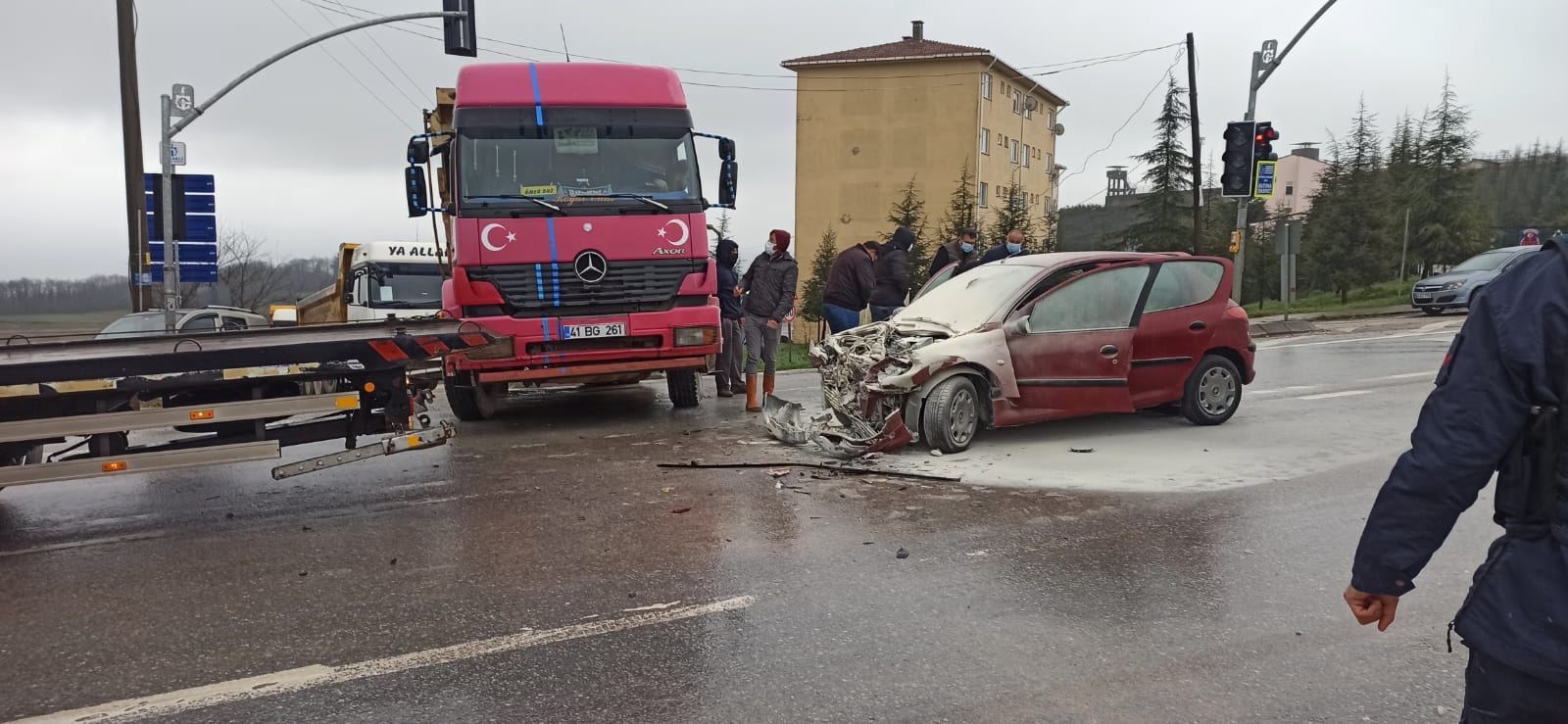 Alınan bilgiye göre, D-605 kara yolunda Kandıra istikametine giden Tekin B'nin kullandığı 41 AGJ 202 plakalı otomobil, cezaevi trafik ışıklarında Ömer D. idaresindeki 41 BG 262 plakalı kamyonla çarpıştı.