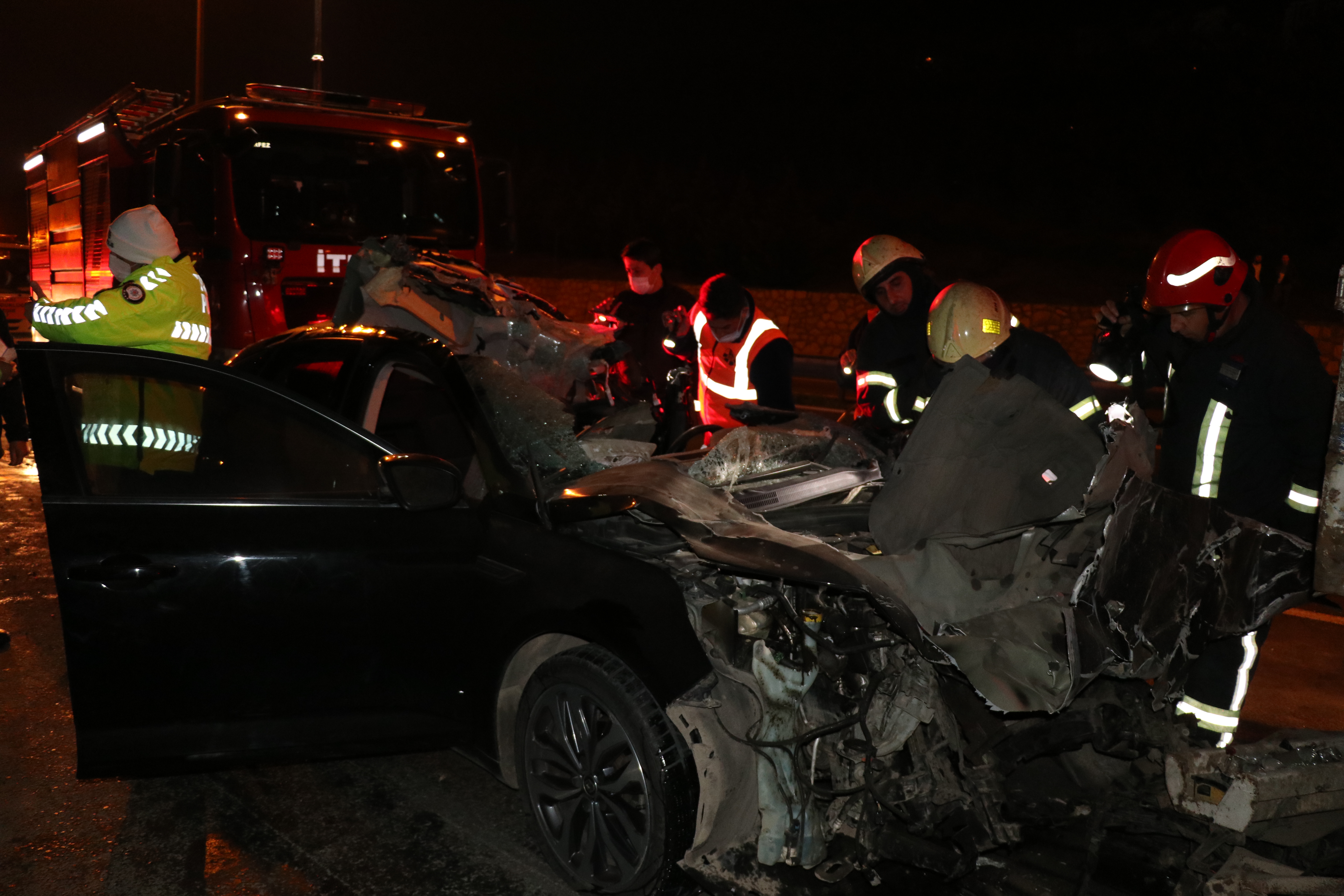 Dorsenin altına giren otomobilde sıkışan otomobil sürücüsü Sedat Ö. ve yanındaki Ahmet D. (24) itfaiye ekiplerinin çalışması sonucu çıkarıldı.