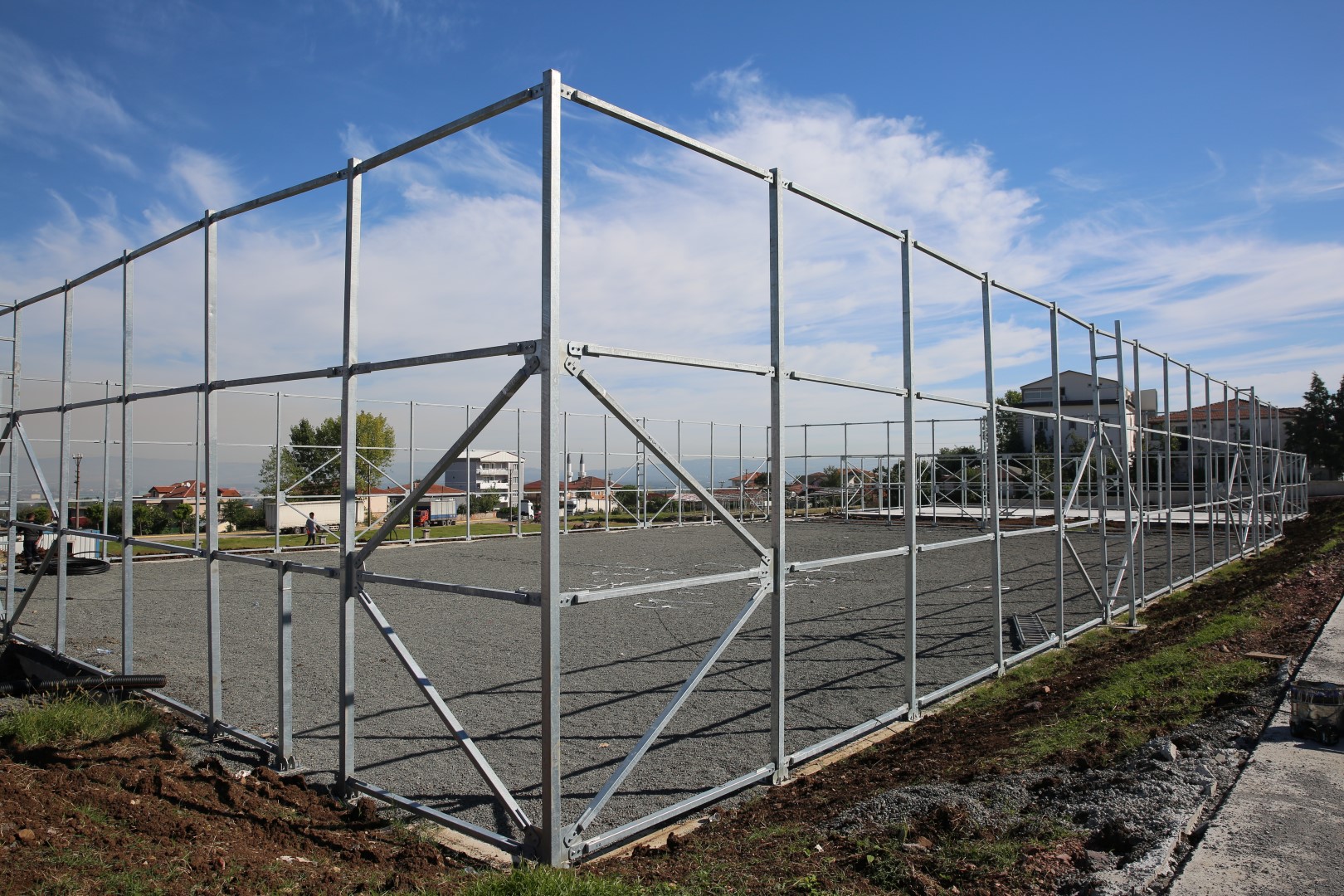 Proje kapsamında elektrik kazıları yapılmaya devam ediliyor. İdari bina ve mescid+wc dış cephe kaplamasına başlanırken basketbol sahası, oyun grubu ve fitness alanı betonu atıldı. Yürüyüş yollarının betonu ise atılıyor. Basket ve futbol sahası direklerinin montajı tamamlanmak üzere.