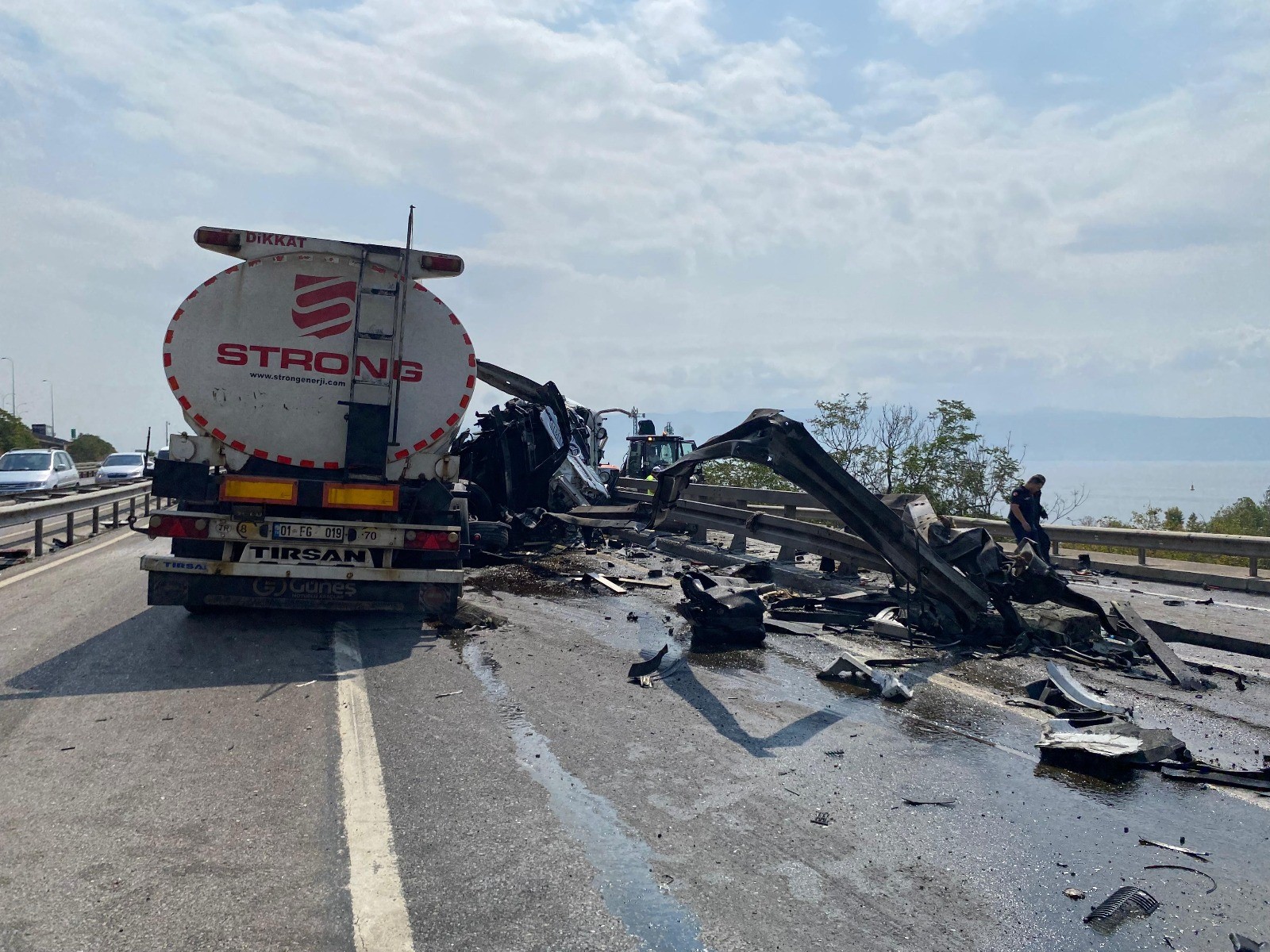 Kaza, 11.00 sıralarında D100 kara yolu Tavşancıl mevki, Ankara istikametinde meydana geldi. A.D.'nin kullandığı 01 BG 578 plakalı tanker, sürücüsünün direksiyon hakimiyetini kaybetmesi neticesinde, önce yön levhasına ardından bariyerlere girdi. Makaslayarak durabilen tır da yangın çıktı. Vatandaşların ihbarı üzerine olay yerine sağlık, polis ve itfaiye ekipleri sevk edildi. İtfaiye ekipleri tankerde soğutma çalışması yaparken, yaralı sürücü A.D. sağlık ekiplerinin müdahalesinin ardından hastaneye sevk edildi. Ortalığın adeta savaş alanına döndüğü kazada, yol her iki istikamete de kısa süreli trafiğe kapandı. Yola ise yağ döküldü. Kara yolları ekiplerinin dökülen yağı temizlemesinin ardından yol kontrollü olarak tekrar trafiğe açıldı. Kazayla ilgili inceleme başlatıldı.