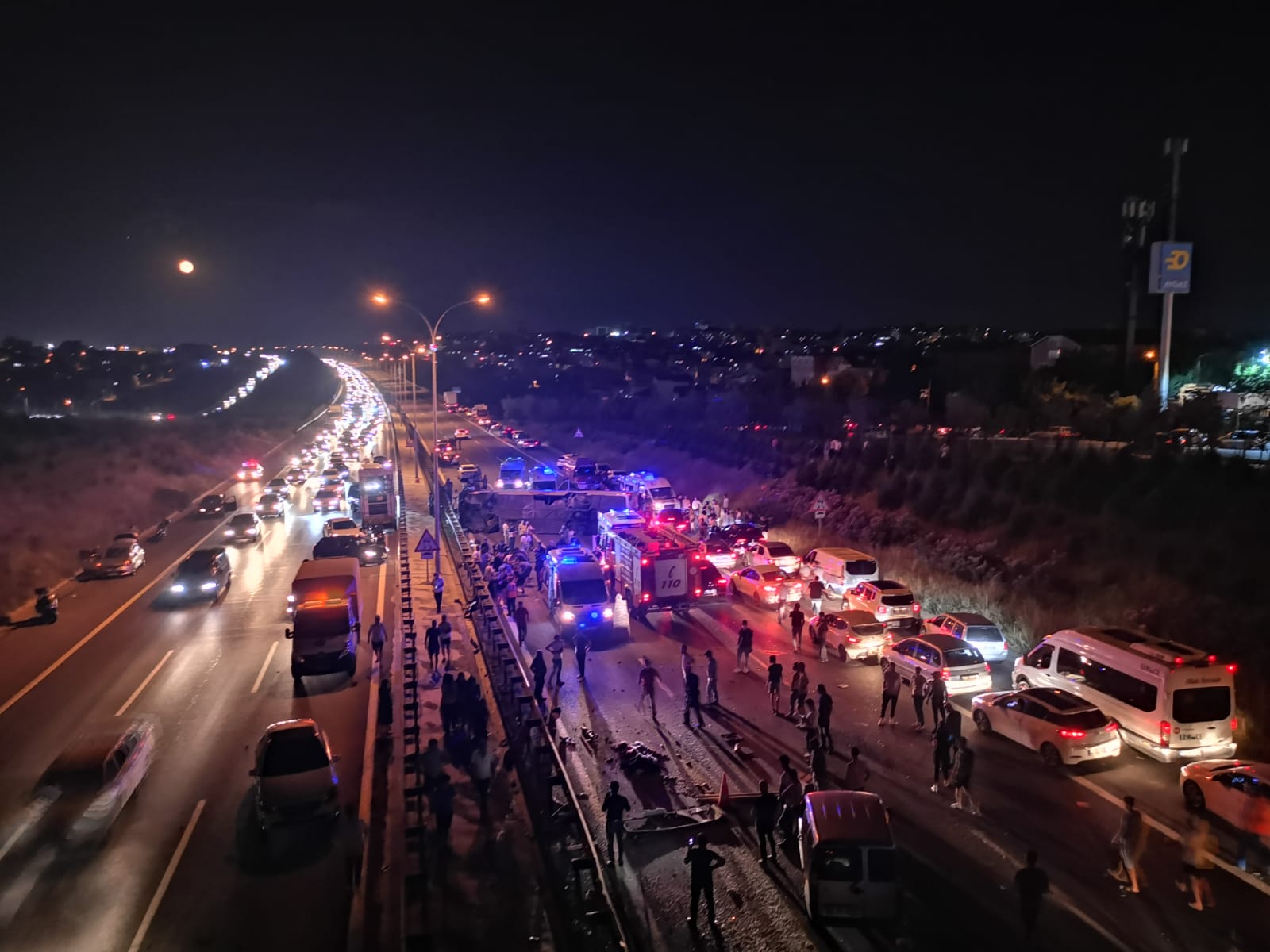 TEM Otoyolu Gebze kesiminde otobüsün devrilmesi sonucu büyük bir kaza meydana geldi.