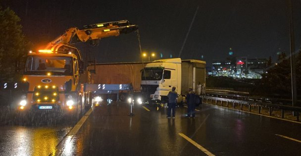 İzmit'te yağmur nedeniyle kayganlaşan yoldan kontrolden çıkan TIR’ın bariyerlere çarptı. Kazada yaralanan olmazken, TEM Otoyolu İstanbul istikameti bir süre ulaşıma kapandı.