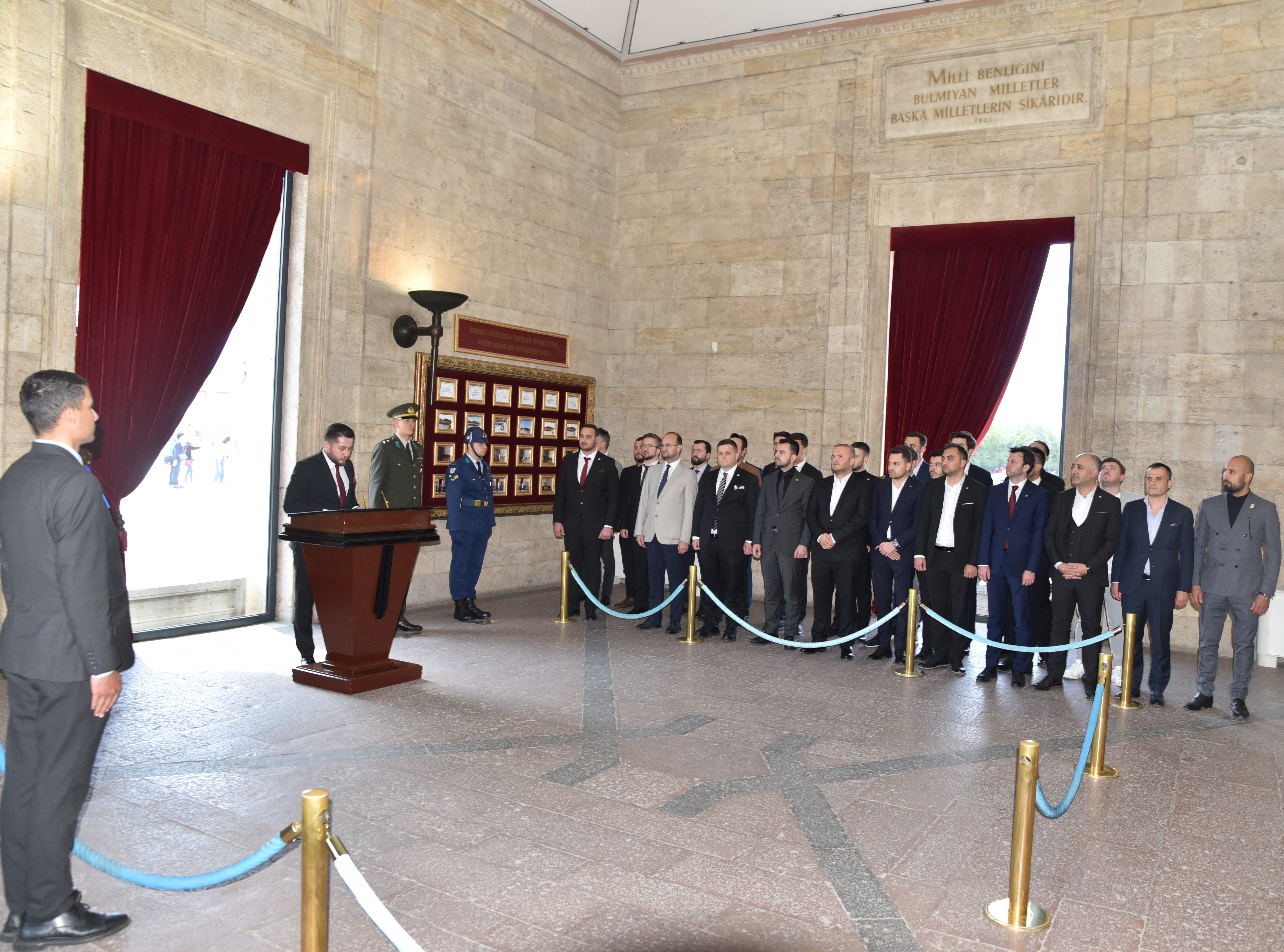 Başkan Mert Kavşut Ata’ya ziyarette resmi törenle çelenk bıraktıktan sonra, kürsüye çıkarak konuşma yaptı.