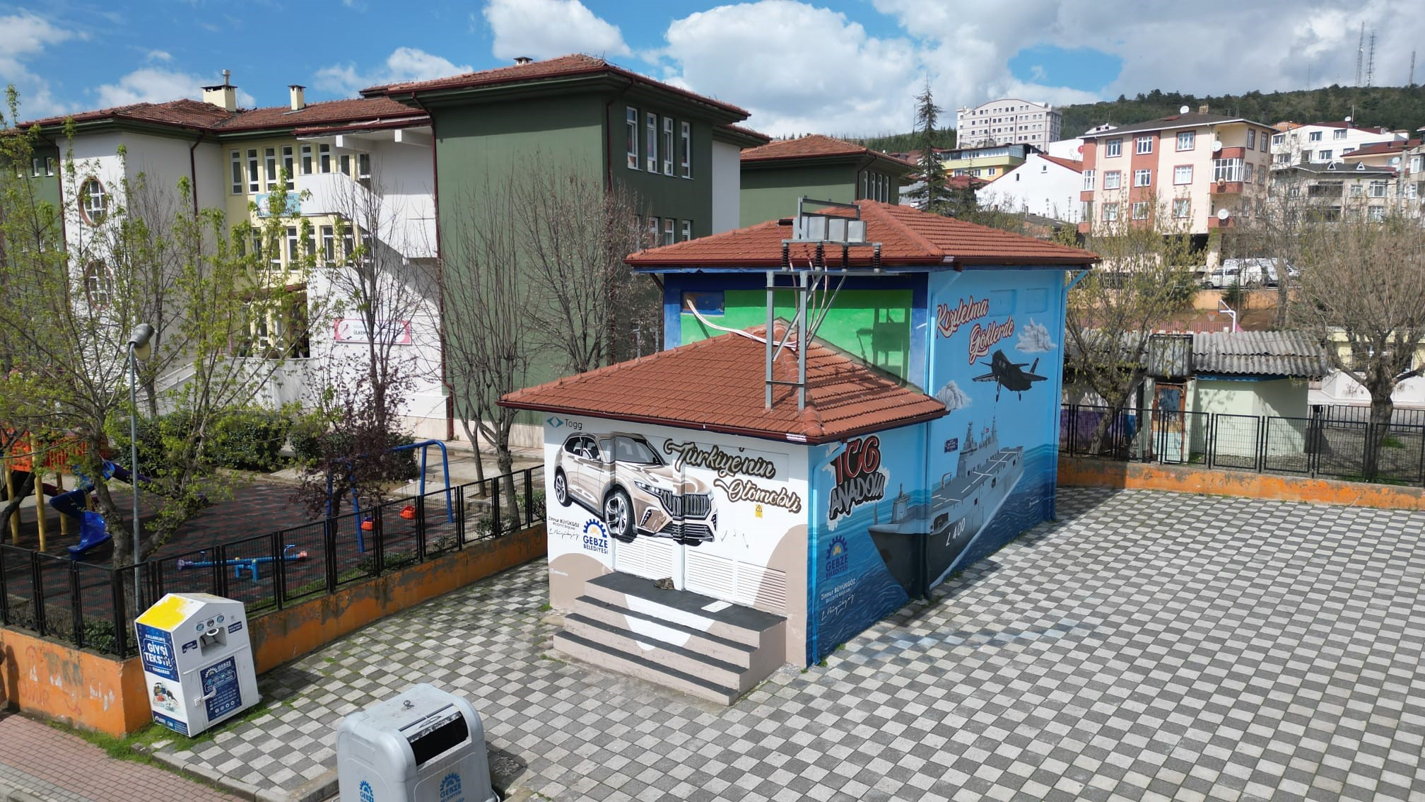 Gebze Belediyesi Park ve Bahçeler Müdürlüğü ekipleri, kentin değişik noktalarında yer alan ve estetik açıdan olumsuz görüntü teşkil eden trafo binalarını yeniden boyayıp, renklendiriyor. Bu çerçevede, Gaziler Mahallesi Şehit Fahri Kır Caddesi 1757 sokak üzerinde bulunan trafo, Türkiye'nin ilk muharip insansız savaş uçağı Kızılelma ve TOGG Anadolu'nun resim ve yazılarıyla süslenerek, kent estetiğine uygun hale getirildi. Gebze Belediyesi Park ve Bahçeler Müdürlüğü yetkilileri, kentin diğer noktalarında da çalışmaların devam edeceği bilgisini paylaştı.