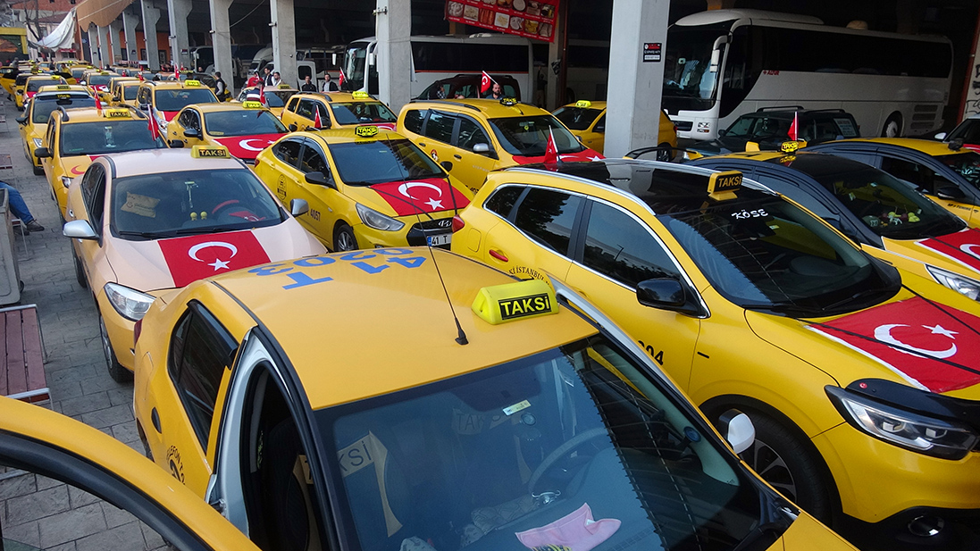 İstiklal Marşı okuyan ve şehitler için dua eden taksiciler, daha sonra kent merkezinde tur attı. Vatandaşlar, taksicilere alkışlarla destek verdi.