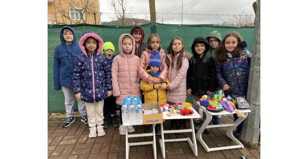 Oyuncak ve su sattıklarını söyleyen Zeynep Reyyan, “Biz burada depremzedelere yardım için oyuncaklarımızı satıp para kazanıyoruz. Kazandığımız parayı da deprem bölgesine gönderiyoruz. Oyuncak ve su gibi şeyler satıyoruz. Kazandığımız bin 500 TL’yi buldu” ifadelerini kullandı.