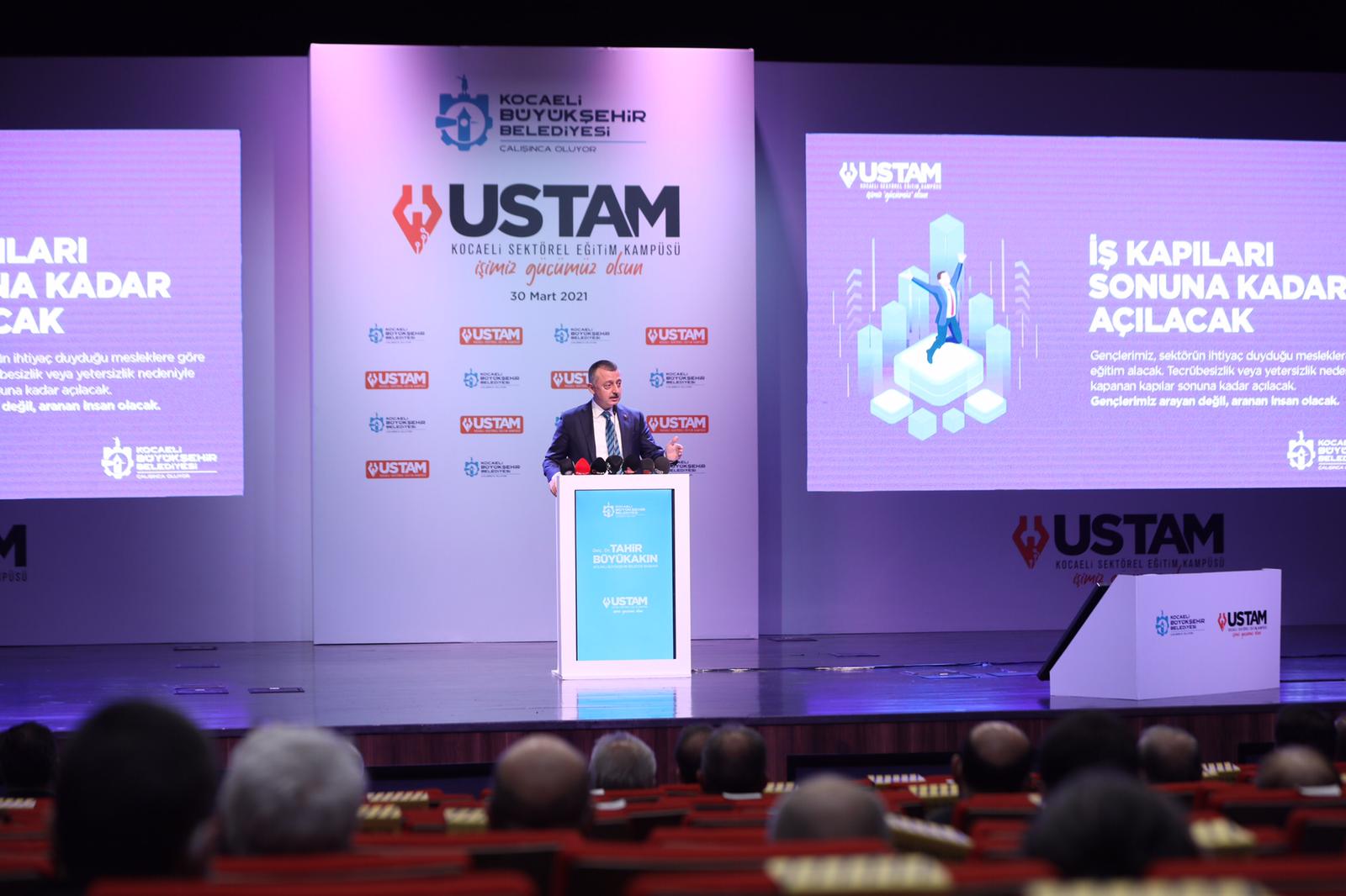 Kocaeli halkına 16 yıldır ücretsiz eğitim hizmeti verdiğimiz KO-MEK ile edindiğimiz tecrübeyle yeni bir eğitim modeline geçiyoruz. KO-MEK bir Halk Üniversitesi oldu, USTAM KOCAELİ Sektörel Eğitim Kampüsü Projesi ise doktora düzeyinde eğitimlerle bir enstitü haline gelecektir. Örgün eğitim çağı dışına çıkmış, herhangi bir mesleği olmayan ya da aldığı eğitimle iş bulamayan gençlerimizi hedefledik. Bireylere sektörün ihtiyaç duyduğu alanlarda uygulama ağırlıklı mesleki ve teknik eğitimler vererek istihdama katkıda bulunmayı amaçladığımız; Ustam Kocaeli Projesi istihdam odaklı bir meslek eğitim projesidir.”