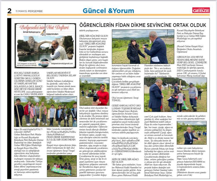 Gebzegazetesi www.gebzegazetesi.com ve www.gazetegebze.com.tr ile belgeselcininnotdefterinde 11 Mayıs 2023 de yayınlanan makalemiz