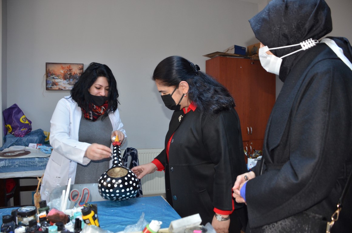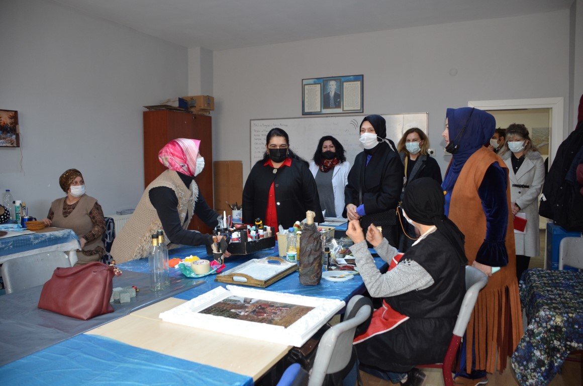 Bayan kursiyerlerle de bir süre sohbet eden ve onların yaptıkları çalışmalara eşlik eden Bayan Yavuz; “Kadınlarımızın eğitimi ve geleceğe güvenle bakması noktasında elimizden gelen her türlü desteği vermeye hazırız.” diyerek, kursiyerlerin yaptıkları birbirinden güzel ürünleri beğeniyle inceleyip, kolaylıklar diledi.
