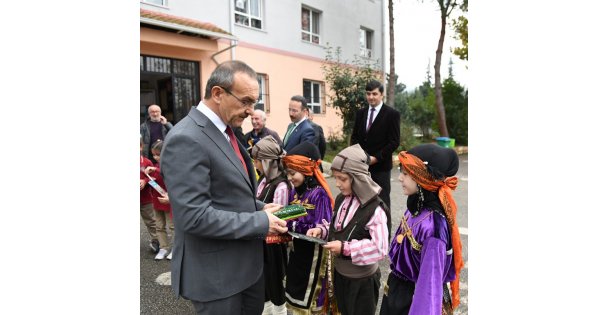 Kartepe Kaymakamı Ömer Hilmi Yamlı’nın eşlik etiği ziyarette Vali Seddar Yavuz, öğrenciler tarafından çiçeklerle karşılandı.