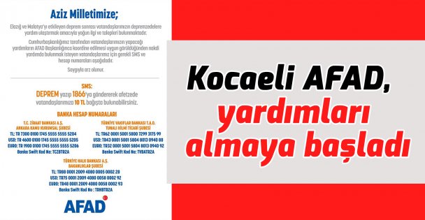 Yardımların düzen içerisinde bölgeye ulaştırılması ve doğru bir lojistik yönetimi için AFAD koordinesi haricinde yardım organizesinin yapılmaması konusunda yetkililer uyarılarda bulunuluyor. Kocaeli AFAD İl Müdürlüğü de, bu kapsamda yardım süreçleri ile ilgili bilgilendirmelerde bulundu.