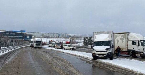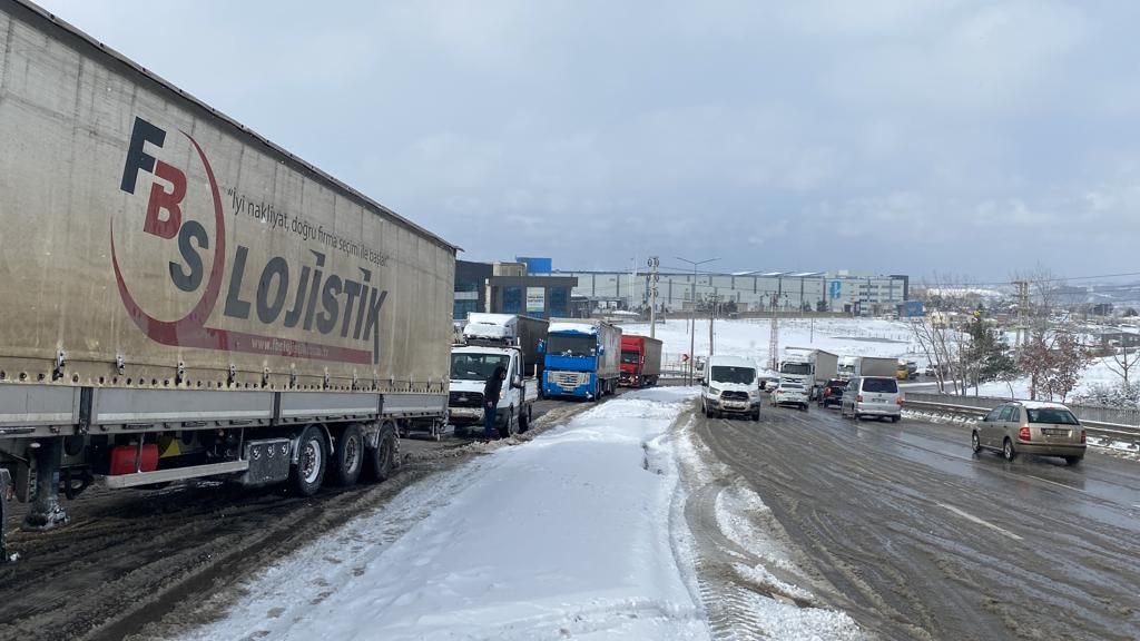 Çayırova Şekerpınar mevkisinde tır, yoğun kar yağışı nedeniyle yolda kaldı. Tırın arkasında uzun araç kuyrukları oluştu. Bazı sürücüler, refüjün üzerinden karşı şeride geçerek ilerledi. Kış lastiği ve zinciri takılı olmayan araçların patinaj yaptığı görüldü. Tırın yoldan çekilmesi için çalışma başlatıldı.