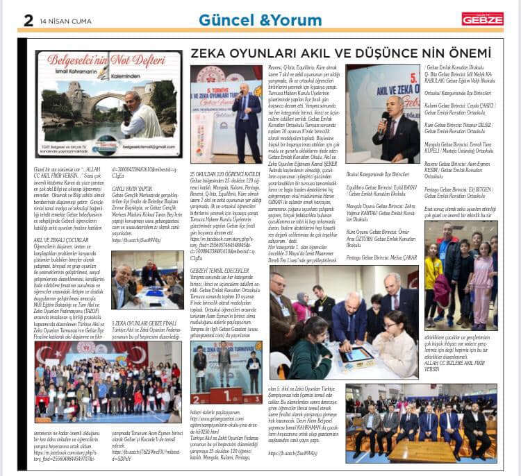 Yarışma ile ilgili Gebze Gazetesi (www.gebzegazetesi.com) da yayınlanan haberi sizlerle paylaşıyorum.