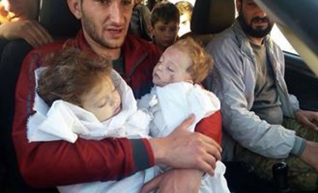 Suriye'de Esed rejiminin Han Şeyhun'da yaptığı kimyasal silah katliamında ikiz bebekleri ve eşi dahil 16 yakınını kaybeden el-Yusuf, bebeklerinin mezar taşlarına sarılarak acısını dindirmeye çalıştı.