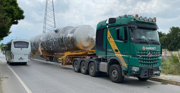 Almanya'dan Kocaeli'ye getirilen 55 metre uzunluğunda ve 53 ton ağırlığındaki kazan yüklü tır, Kartepe'de kavşaktan geçemeyince yolda kaldı. Kavşaktaki beton kısım kaldırılırken, refüjde bulunan ağaçların zarar görmemesi adına kaldırımın kaldırılacağı ve tırın sonra dönüş yapabileceği öğrenildi.