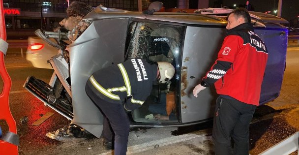 İzmit ilçesinde sürücüsünün kontrolünden çıkan hafif ticari araç bariyerlere çarparak devrildi. İtfaiye ekiplerince sıkıştığı yerden aracın ön camı kırılarak çıkarılan sürücü hastaneye kaldırıldı.