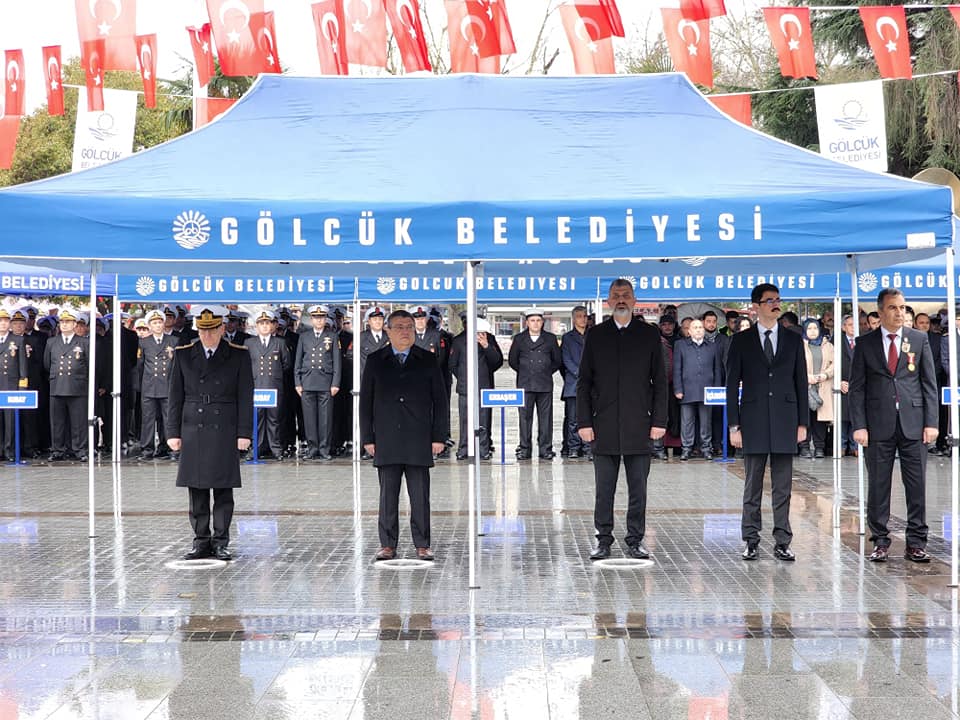 Kocaeli Vali Yardımcısı Gölcük Kaymakam Vekili Ali Ada, Gölcük Deniz Ana Üs ve Garnizon Komutanı Tuğamiral Aziz Bakıoğlu, Gölcük Belediye Başkanı Ali Yıldırım Sezer ve Türkiye Harp Malulü Gaziler, Şehit Dul ve Yetimleri Derneği Gölcük Temsilciliği Başkanı Mehmet Uğur’un Atatürk Anıtı’na çelenk sunmasıyla başlayan tören, askeri bando eşliğinde bir dakikalık saygı duruşu ve akabinde de; İstiklal Marşı’nın okunmasıyla son buldu.
