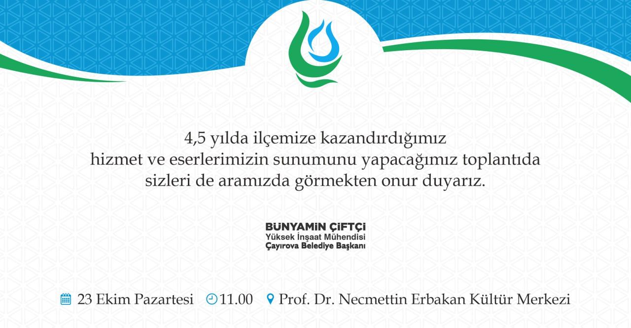 Çayırova Belediye Başkanı Bünyamin Çiftçi, konuya ilişkin yaptığı açıklamada, “Görev süremiz boyunca ilçemize kazandırdığımız hizmet ve eserleri tanıtacağımız toplantıya tüm halkımız davetlidir” dedi.