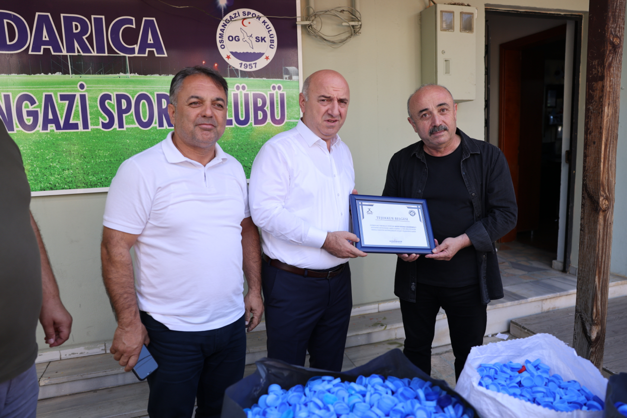 Toplanan atık maddeleri bizzat kendisi teslim alan Darıca Belediye Başkanı Muzaffer Bıyık, duyarlı ve örnek davranışlarından dolayı Osmangazi Mahalle Muhtarı Kenan Demirbaş ve mahalle sakinlerine teşekkür etti. Amaçlarının farkındalık oluşturmak ve doğayı korumak olduğunu belirten Başkan Muzaffer Bıyık, “Osmangazi mahallemiz el ele vererek güzel bir çalışma yaptı. Bizler de toplanan atıklar karşılığında ihtiyaç sahipleri için tekerlekli sandalye veriyoruz. Kazan kazan anlayışıyla hem farkındalık oluşturuyoruz hem çevreyi koruyoruz hem de ihtiyaç sahibi vatandaşlarımıza dokunuyoruz. Her mahallemizde benzer projemiz devam ediyor. Sıfır atık konusu memleket meselesi. Bu bilinçle hareket ediyoruz ve herkesi daha duyarlı olmaya davet ediyoruz” dedi. Mahalle Muhtarı Kenan Demirbaş da projeye katıldıkları için mutlu olduklarını ifade ederek kendilerine destek veren Belediye Başkanı Muzaffer Bıyık’a teşekkür etti.