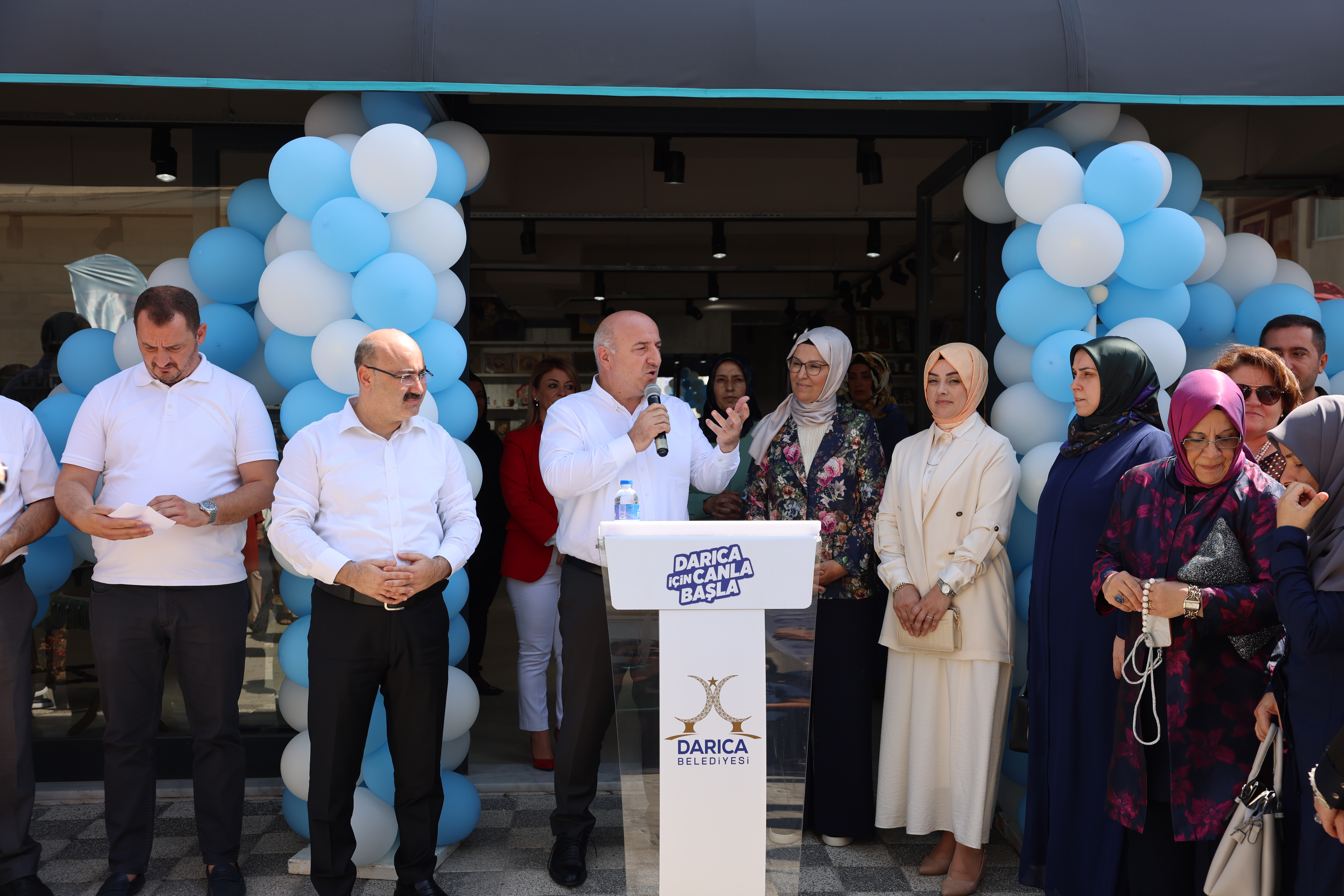 Açılış töreninde konuşan Darıca Belediye Başkanı Muzaffer Bıyık, kadınlara verdikleri sözü yerine getirdikleri için mutlu olduğunu ifade ederek “Darıca’mızda yıllardır hayalini kurduğumuz, planladığımız bir mağazayı kadınlarımızın hizmetine açtığımız için mutluyuz. Yıllardır Üreterek ekonomiye kazandırdığımız bir atölyenin bugün bir ticarete dönüşmesi ve ekonomiyle buluşması gerçekleşiyor. Ev halkının ve hane halkının ekonomisine bir nebze de olsa fayda sağlaması amacıyla geliştirdiğimiz bir proje. Mutlu kadın mutlu aile anlayışıyla hareket ediyoruz. Bu mağaza da bu anlayışın bir sonucu” dedi.