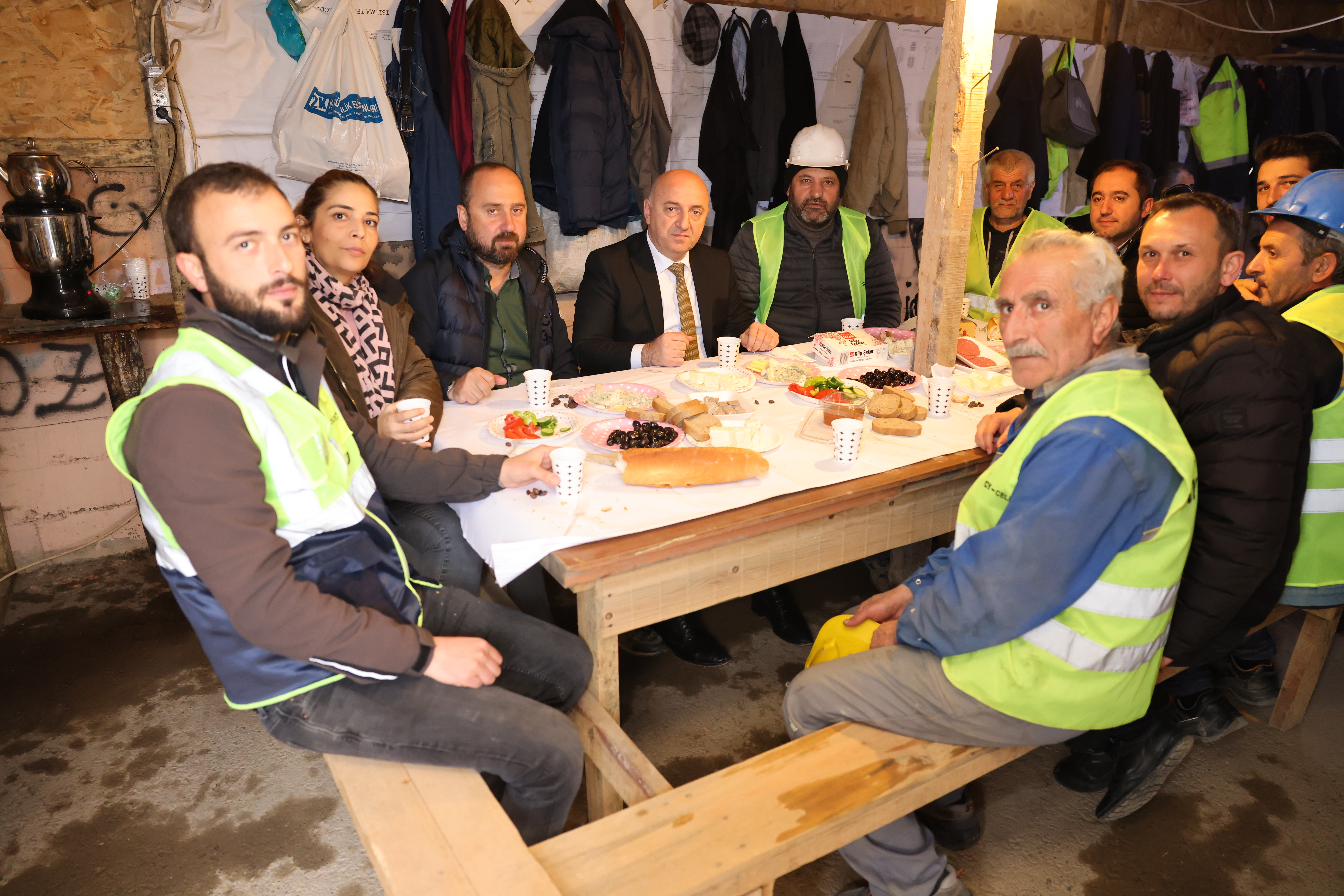 İŞÇİLERLE ŞANTİYEDE KAHVALTI YAPTI