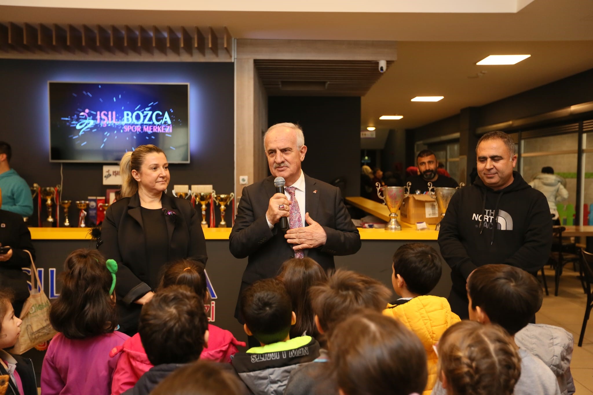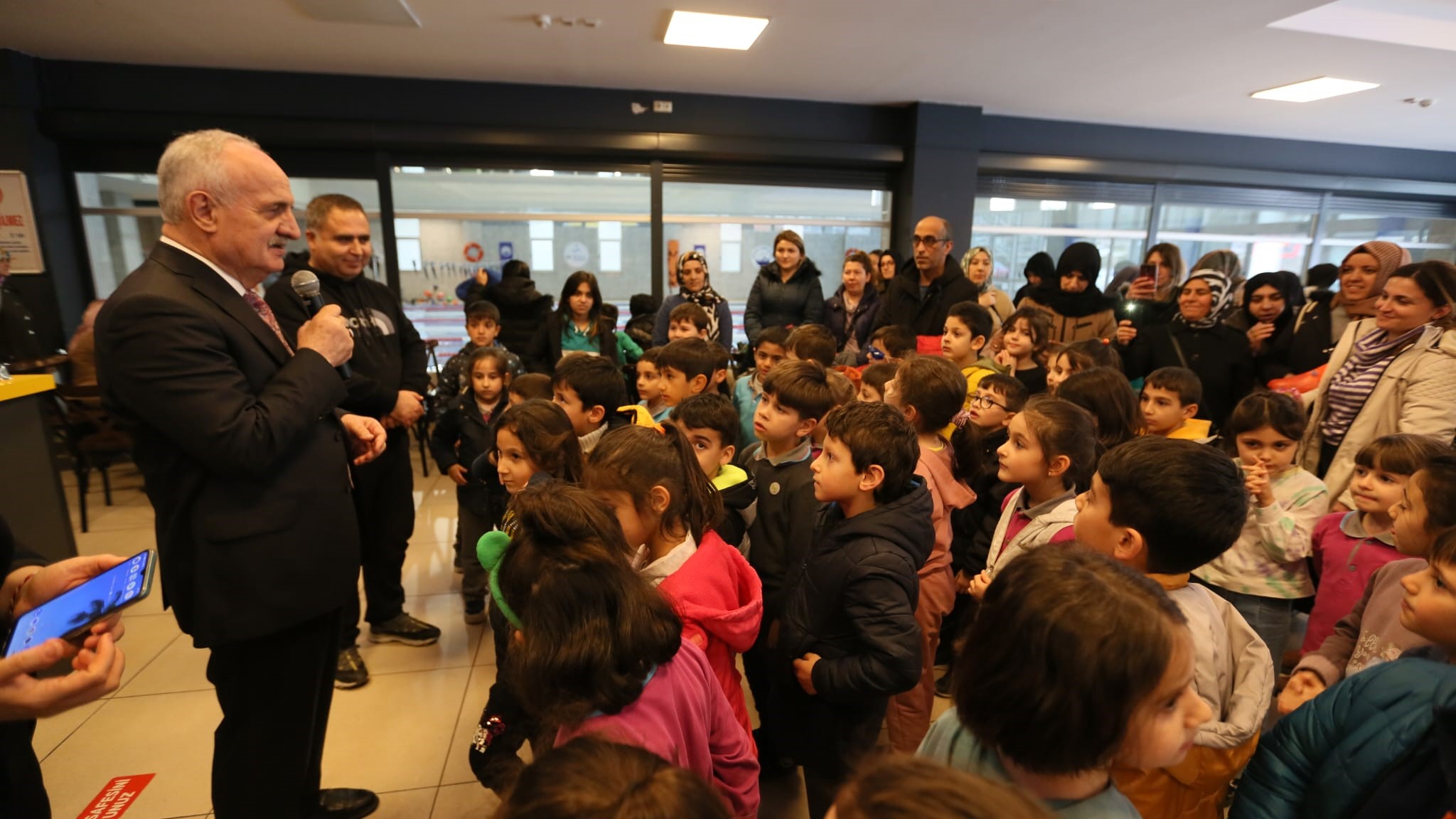 Derince Belediye Başkanı Zeki Aygün de Başkan Yardımcısı Kemal Bayraktar ile birlikte yüzme havuzuna giderek, burada eğitim gören İbni Sina İlkokulu ve Bekir Sıtkı Özer İlkokulu’nun öğrencileri, velileri ve öğretmenleri ile bir araya geldi. Gençliğe ve spora yatırımlarının devam edeceğini söyleyen Başkan Aygün, “Çocuklarımız bizim geleceğimiz. Hayata geçirdiğimiz uygulamalarımızla onların daima yanında olmaya devam edeceğiz” dedi.