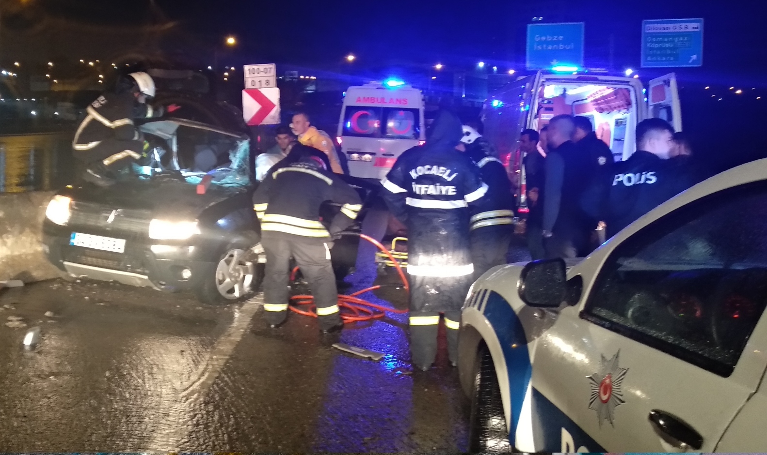 Dilovası'nda bariyere çarpan otomobilin sürücüsü yaralandı.
