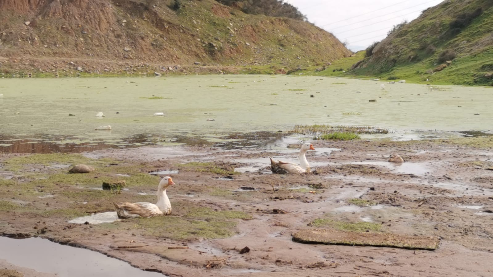 Kirazpınar Mahallesi'nde Emine Yavuz'a ait 3 kaz, bir köpeğin kovalaması üzerine bataklığa kaçtı.